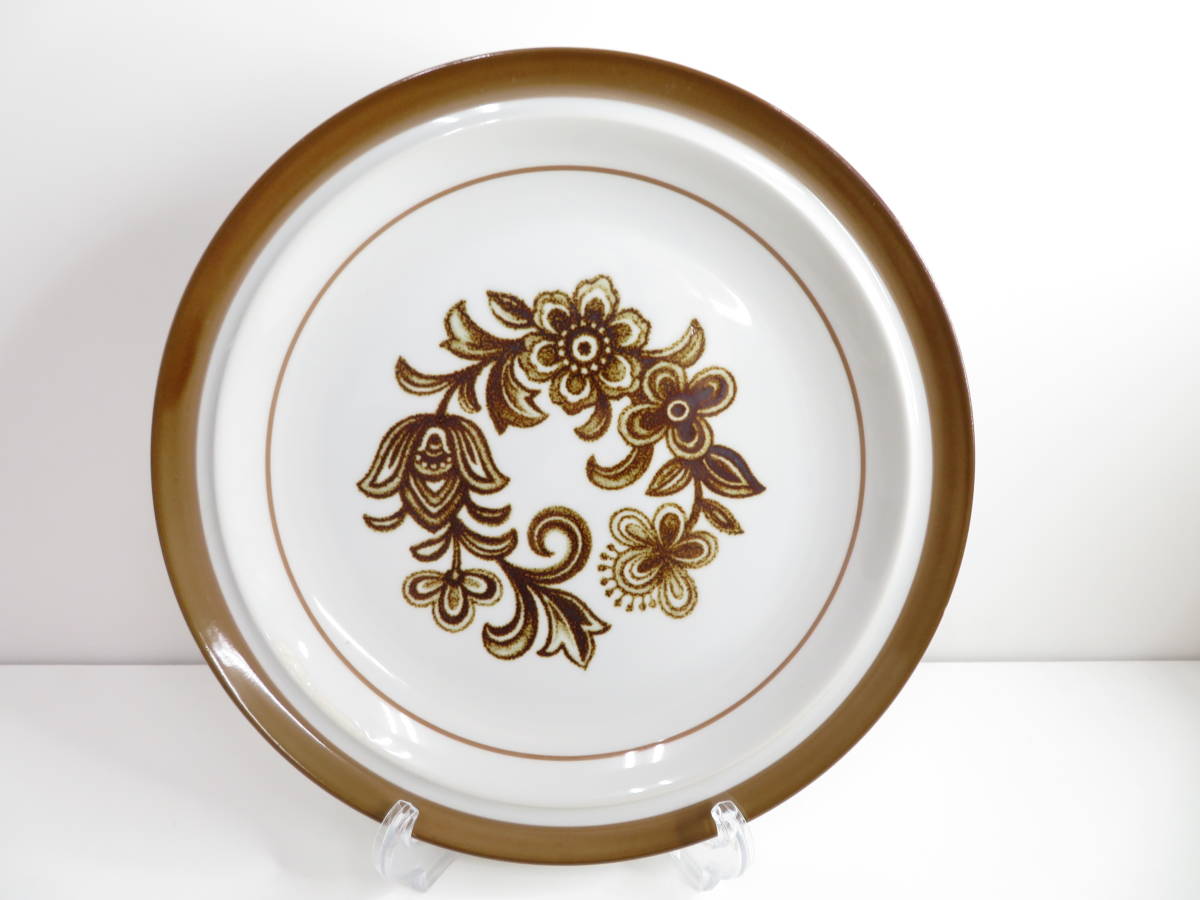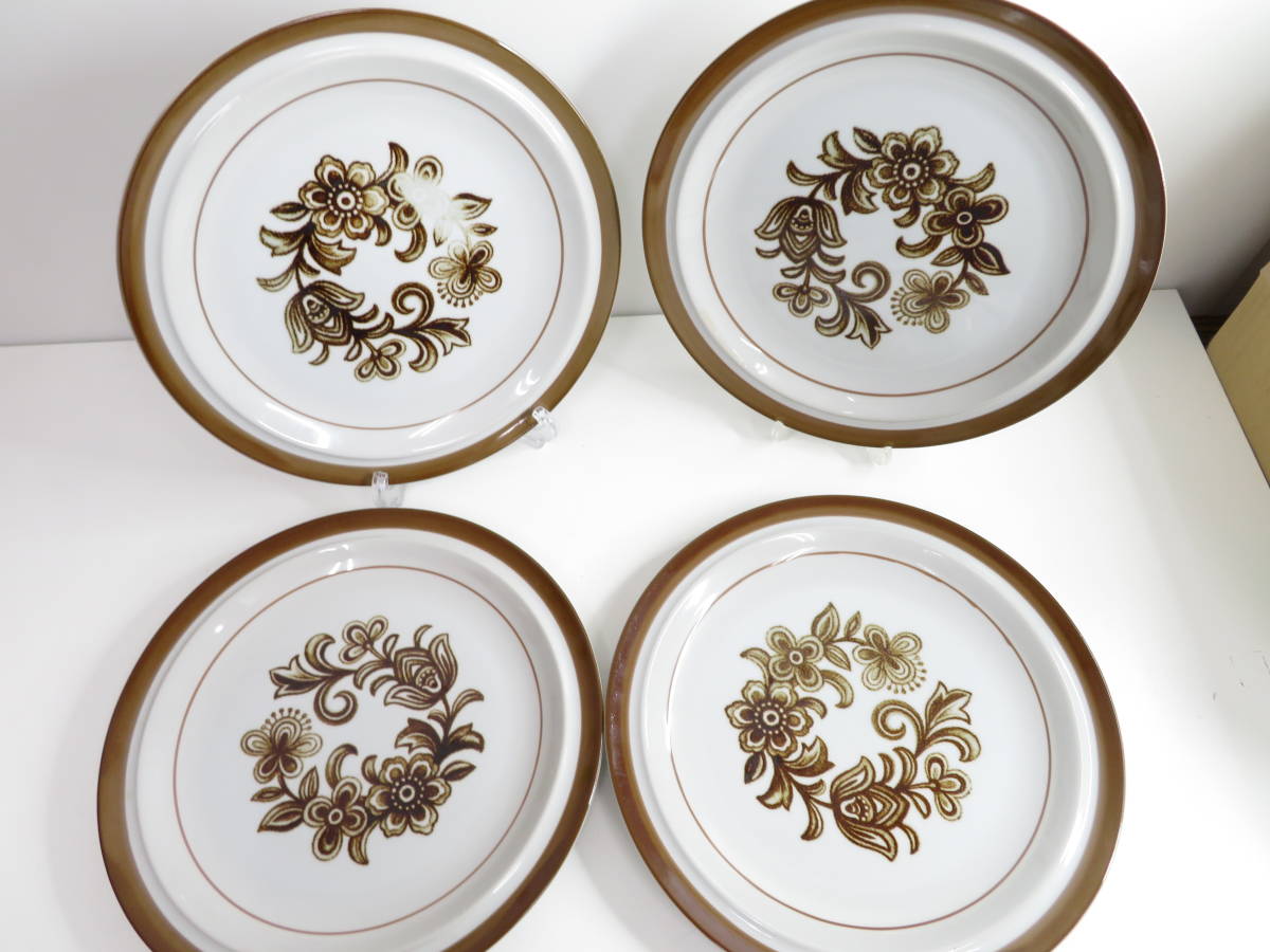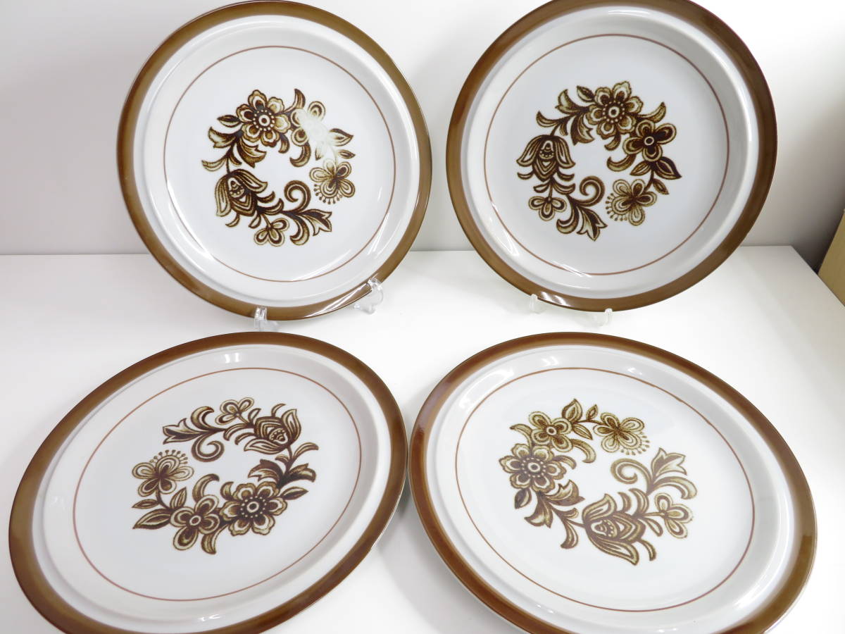 昭和レトロ・美品◇BROWN MONTERREY STONEWARE ストーンウェア 大皿 4客セット 花柄 同柄セット 管理2009 L-9