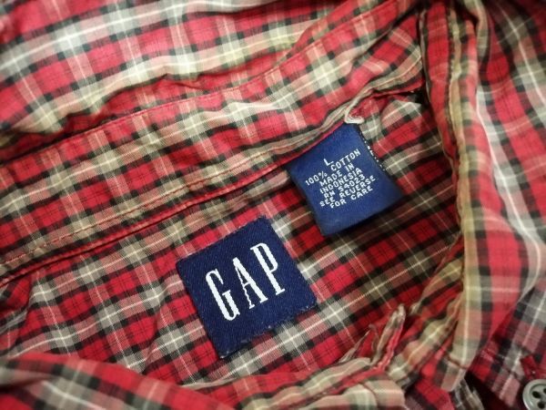 kkyj4406 ■ GAP ■ シャツ トップス 長袖 ボタンダウン チェック コットン 赤 L