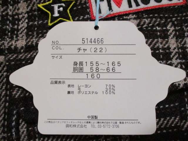 ● フィオルッチ ● 可愛いウール混プリーツキュロット ☆160㎝☆濃茶 0208 未使用
