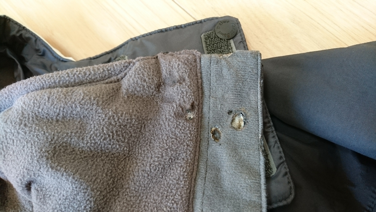 襟内側にタバコ焼けがございます。画像にてご確認ください。ジップを閉めればわかりません。