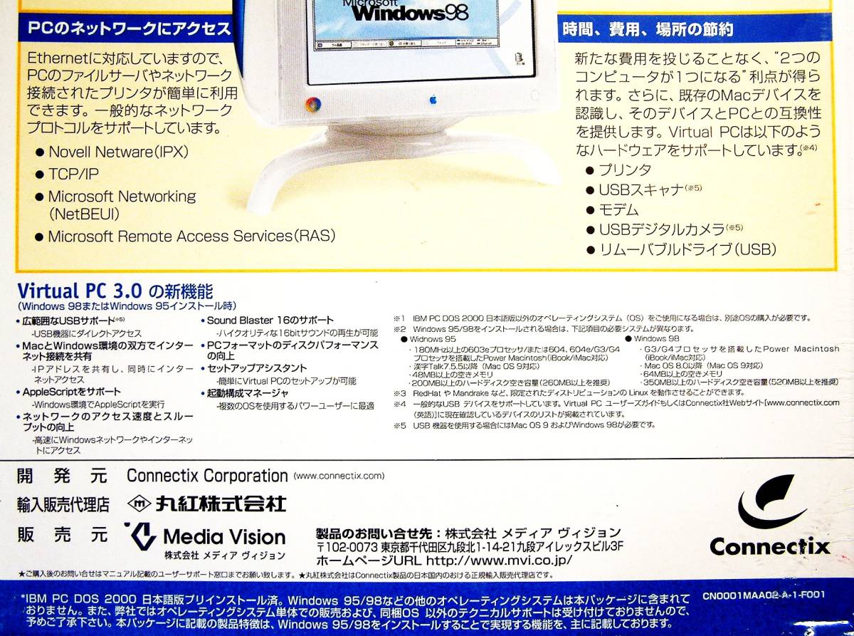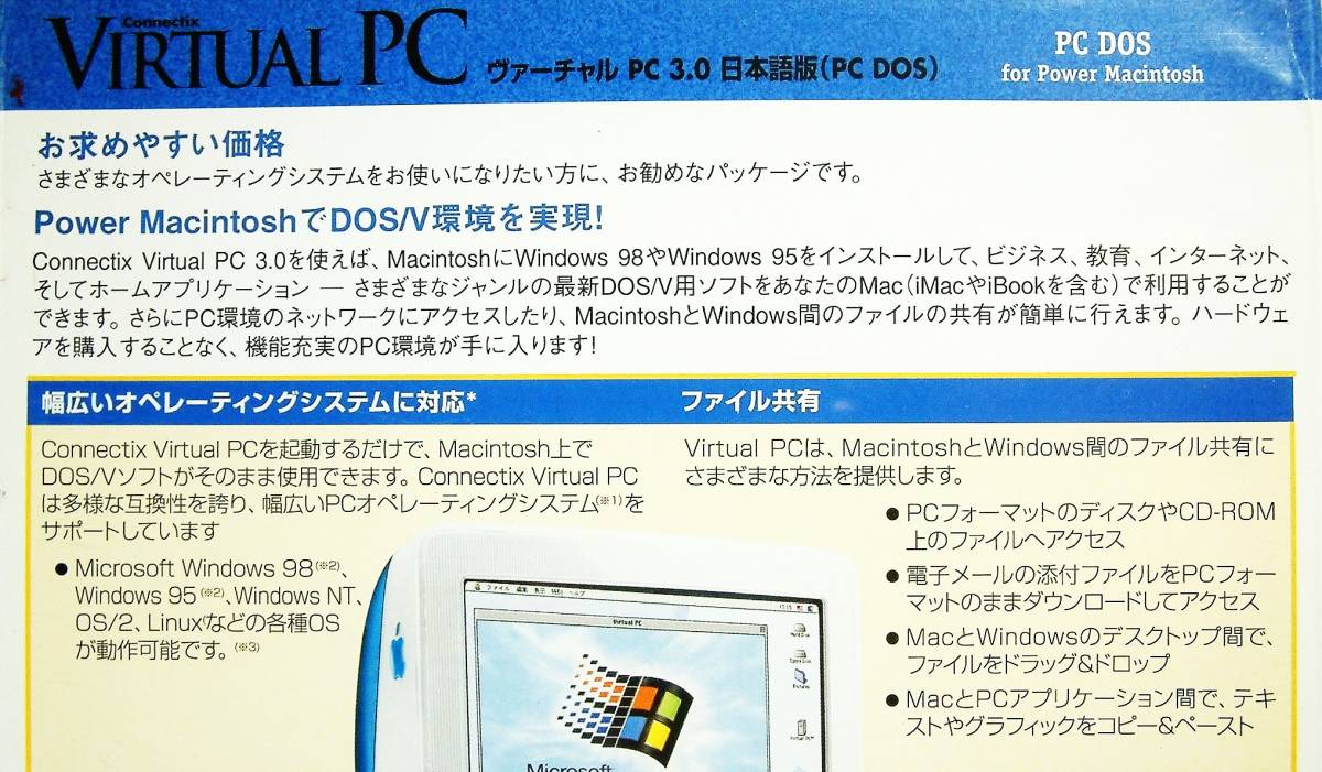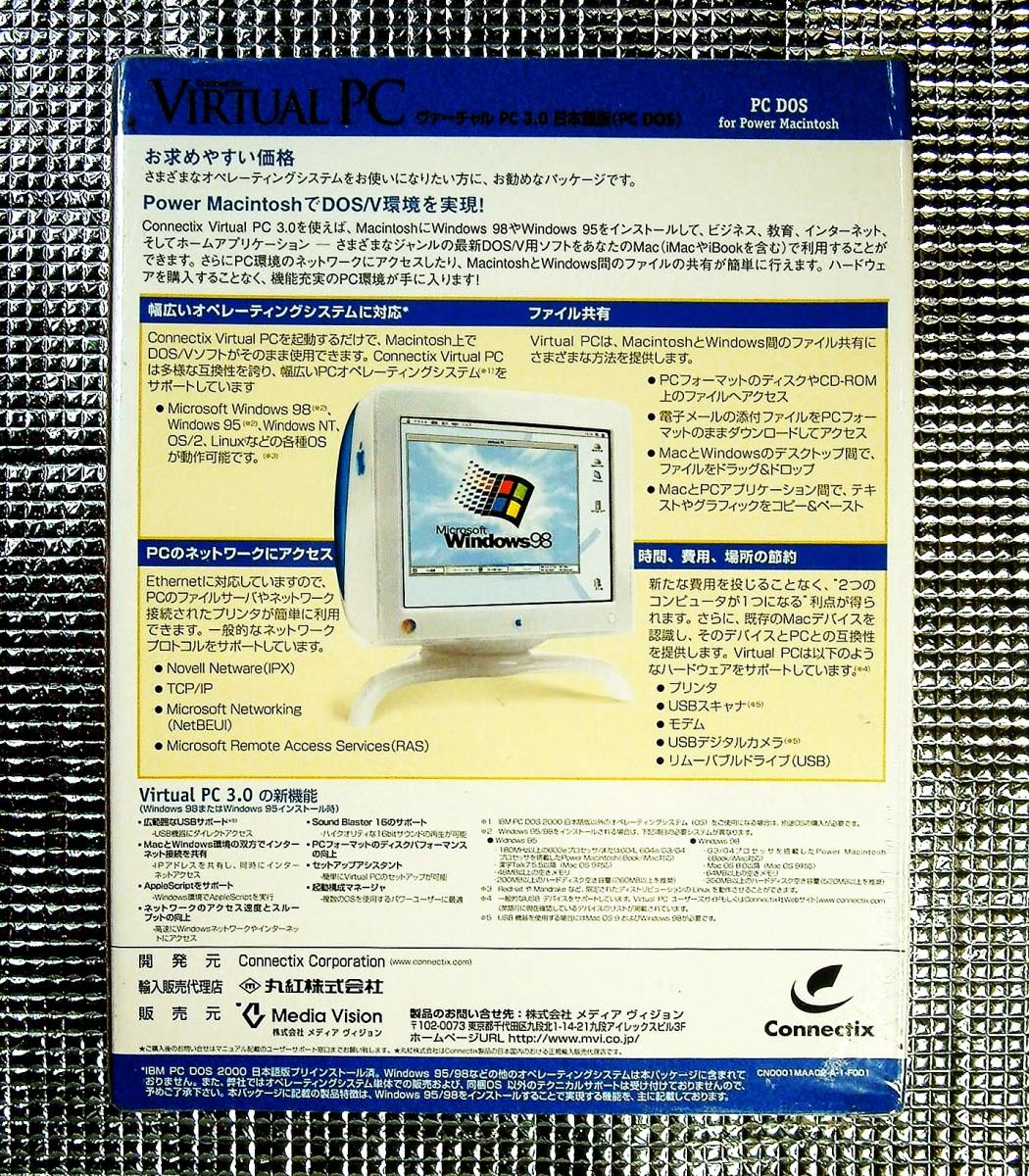 【4300】Connectix Virtual PC 3.0 with IBM PC DOS 未開封 Macintosh(マッキントッシュ)でDOS/V環境 ヴァーチャルPC 仮想化 仮想マシーン