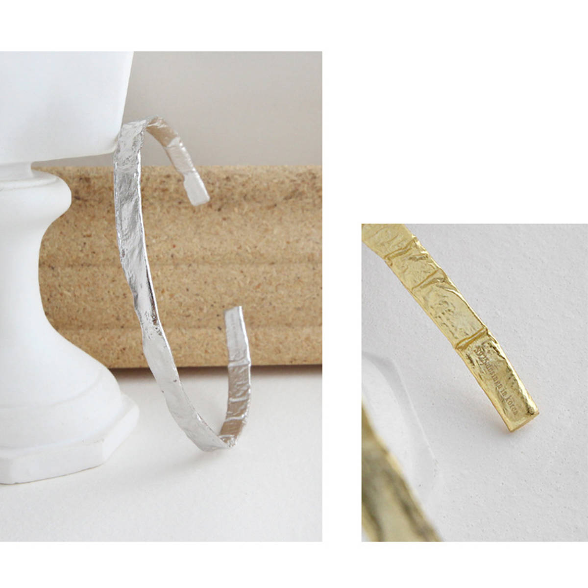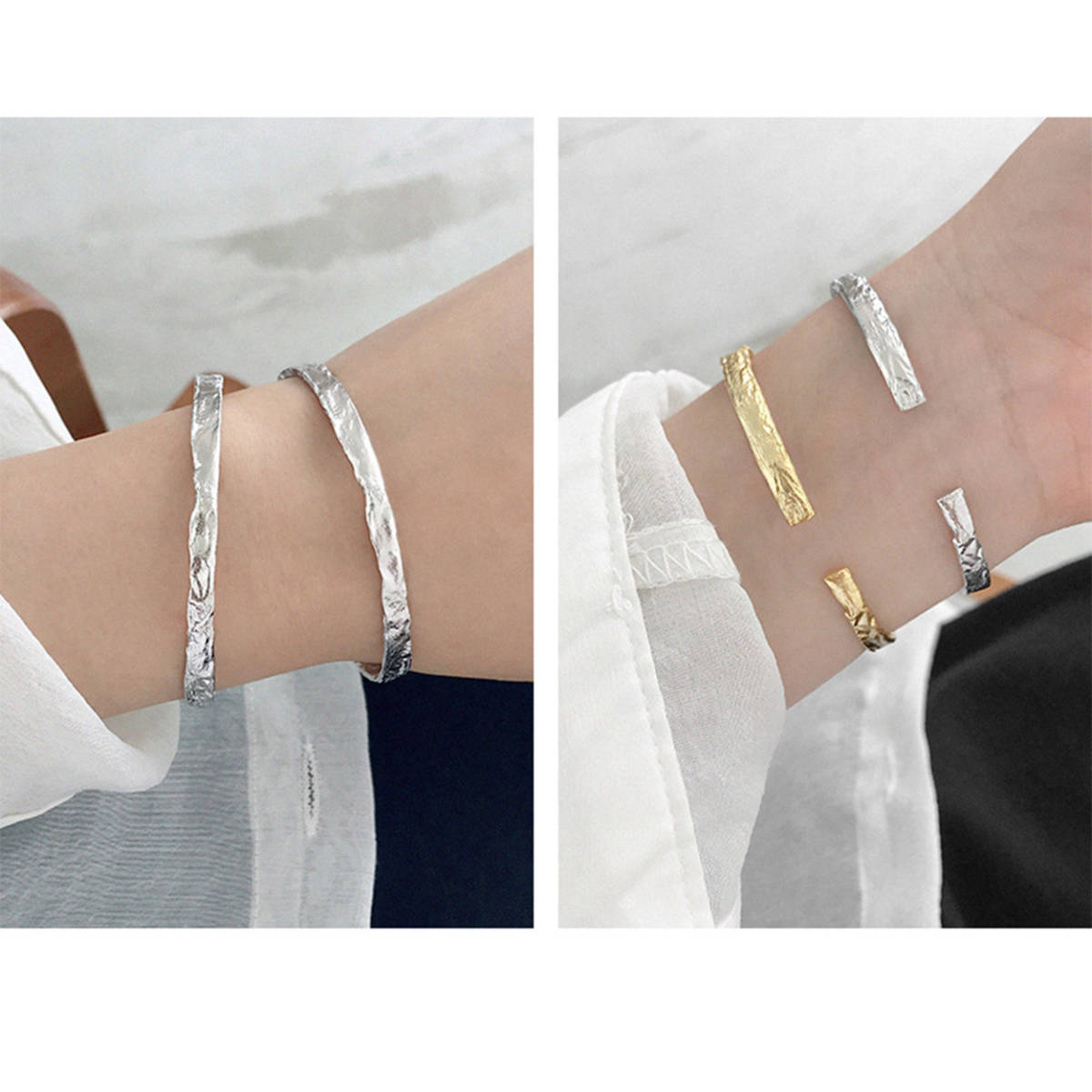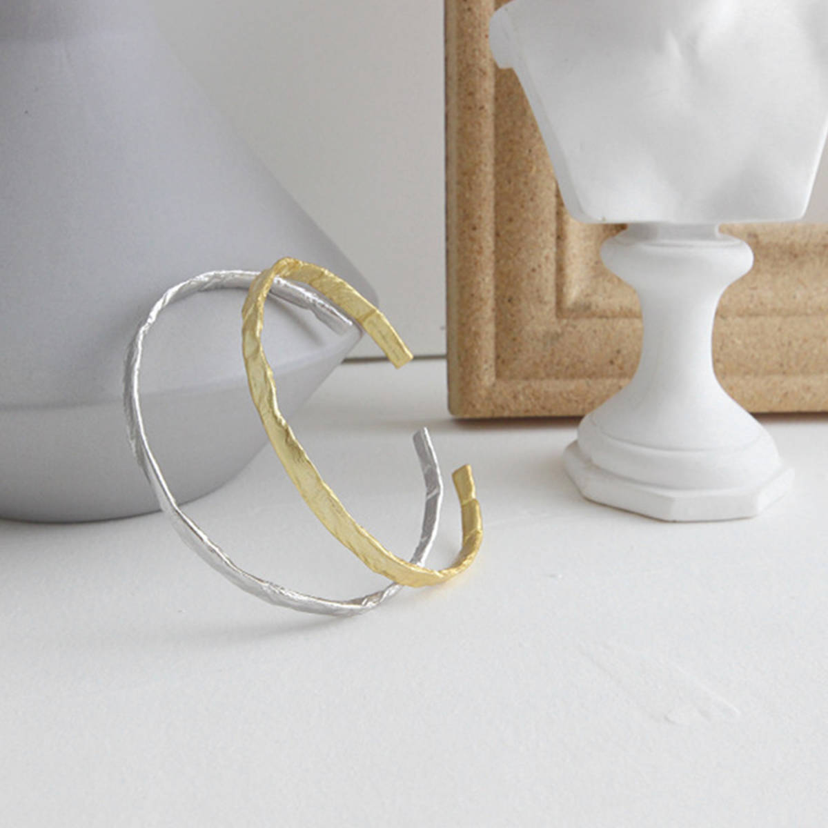 この度は商品をご覧いただき有難うございます。 プロフィール欄必見にて宜しくお願い致します。 送料無料にてご提供させていただきます。 素材はシルバー925を使用ししっかりとした作りのバングル。 サイズ調整可能なシルバー925バングルシリーズ! シンプルで使い勝手がよくコーデを選ばず合わせやすく、メンズ、レディース問わずユニセックスでの着用が可能。 ゴールドカラーは SILVER925に18Kコーテイングを施しております。 ■調整可能なデザイン サイズはある程度、ご自身でサイズ調整可能のフリーサイズとなっていますので、どの手首にも対応したモデルとなっています。 いろいろなデザインが有り、色々な用途に使えます。 ■重ね付け自在のシンプルデザイン 主張しないシンプルなデザインは、腕時計などのアクセサリーと 合わせて重ね付けしても付け過ぎ感を感じさせない優れものです。 お気に入りのブレスレットと好みのパターンで組み合わせて、 手元が華やかな印象に変化するオススメのブレスレット。 是非この機会にお試しください。 <注意点> ※初期サイズに多少の誤差が生じる場合がございます。 ※サイズ広げることによりバングルの腕部分に隙間が生じるデザインとなります。 ※調整を頻繁に行うと金属疲労の為、折れる可能性もありますのでお気を付け下さい。 【素材】 シルバー925 【サイズ】 幅5mm 厚さ1mm 内径140mm | |||