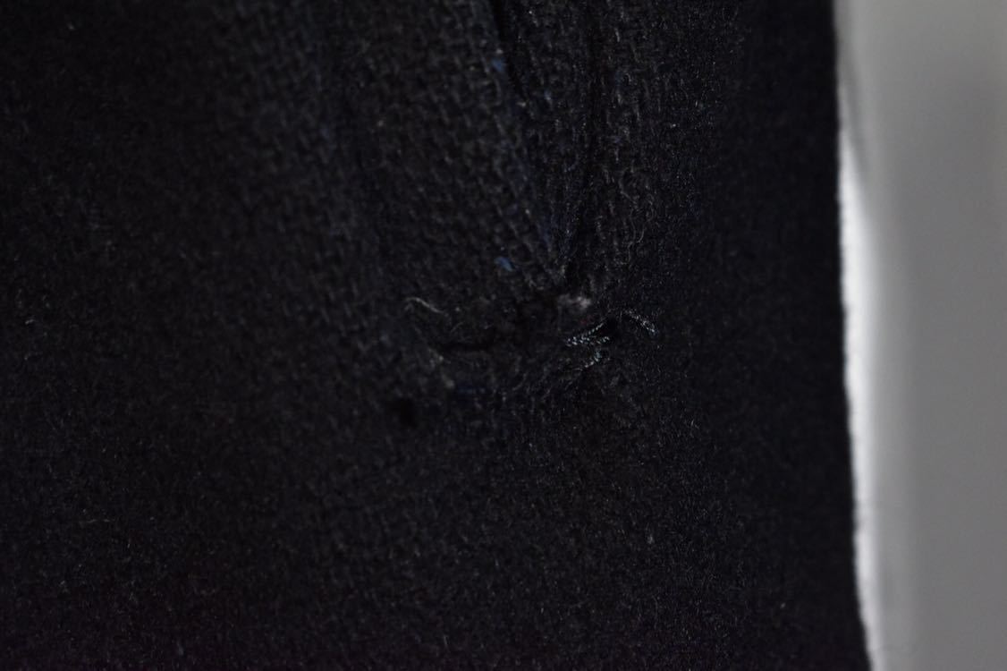 ポケット縁にダメージリペアあり。その他、毛玉、薄汚れ、使用感ございますが着用に問題ありません。画像判断お願いします。