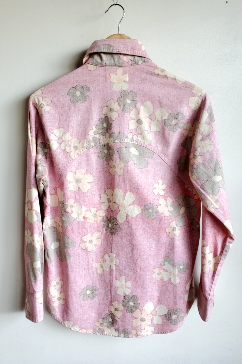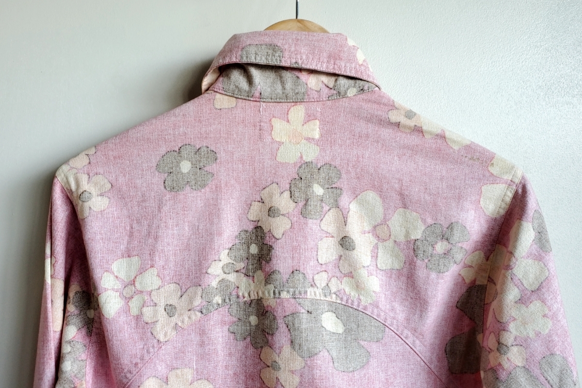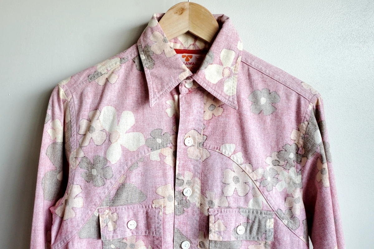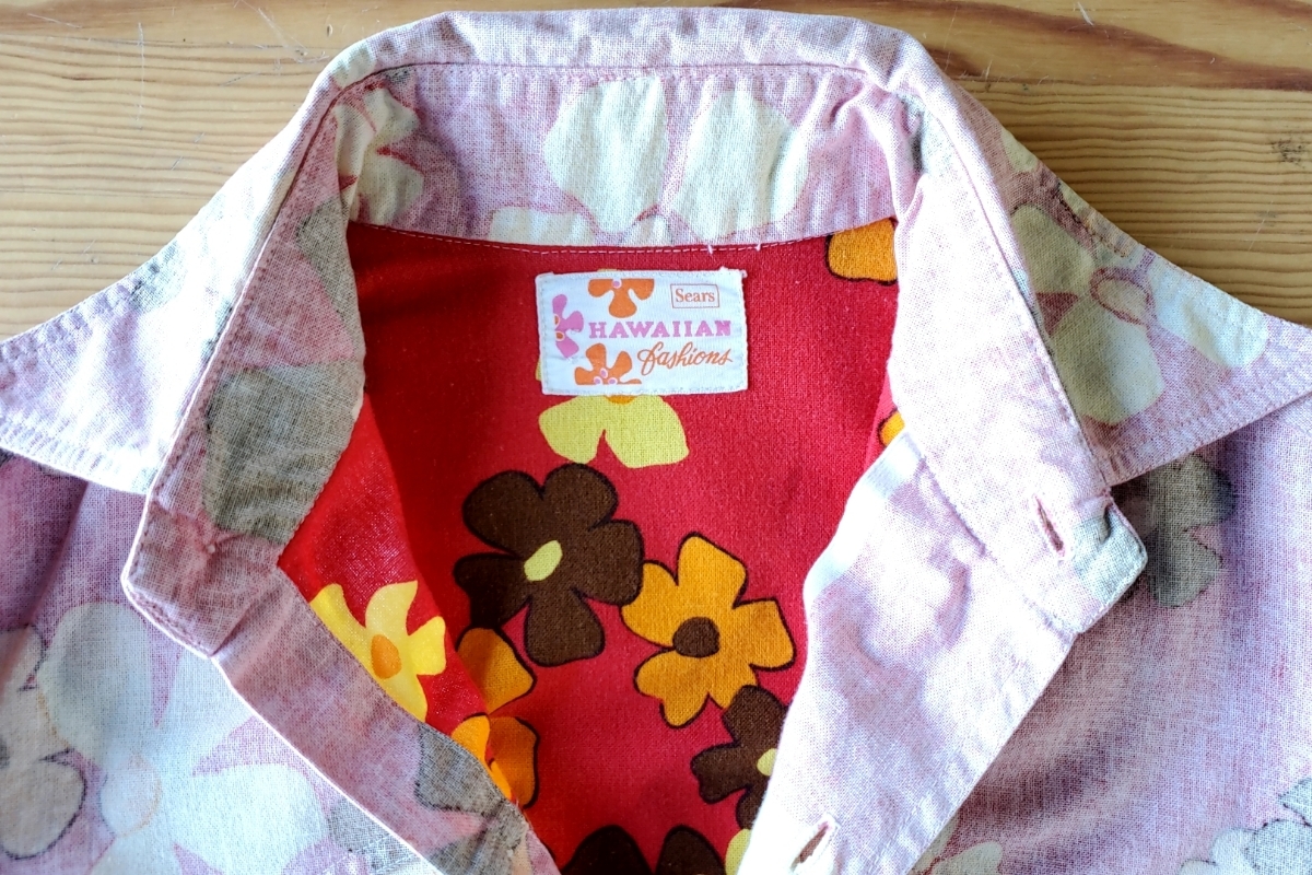 419◆【size不明】シアーズ Sears Hawaiian 長袖 コットン アロハシャツ 裏地使い 花柄 赤 レッド ピンク 古着 中古 USED