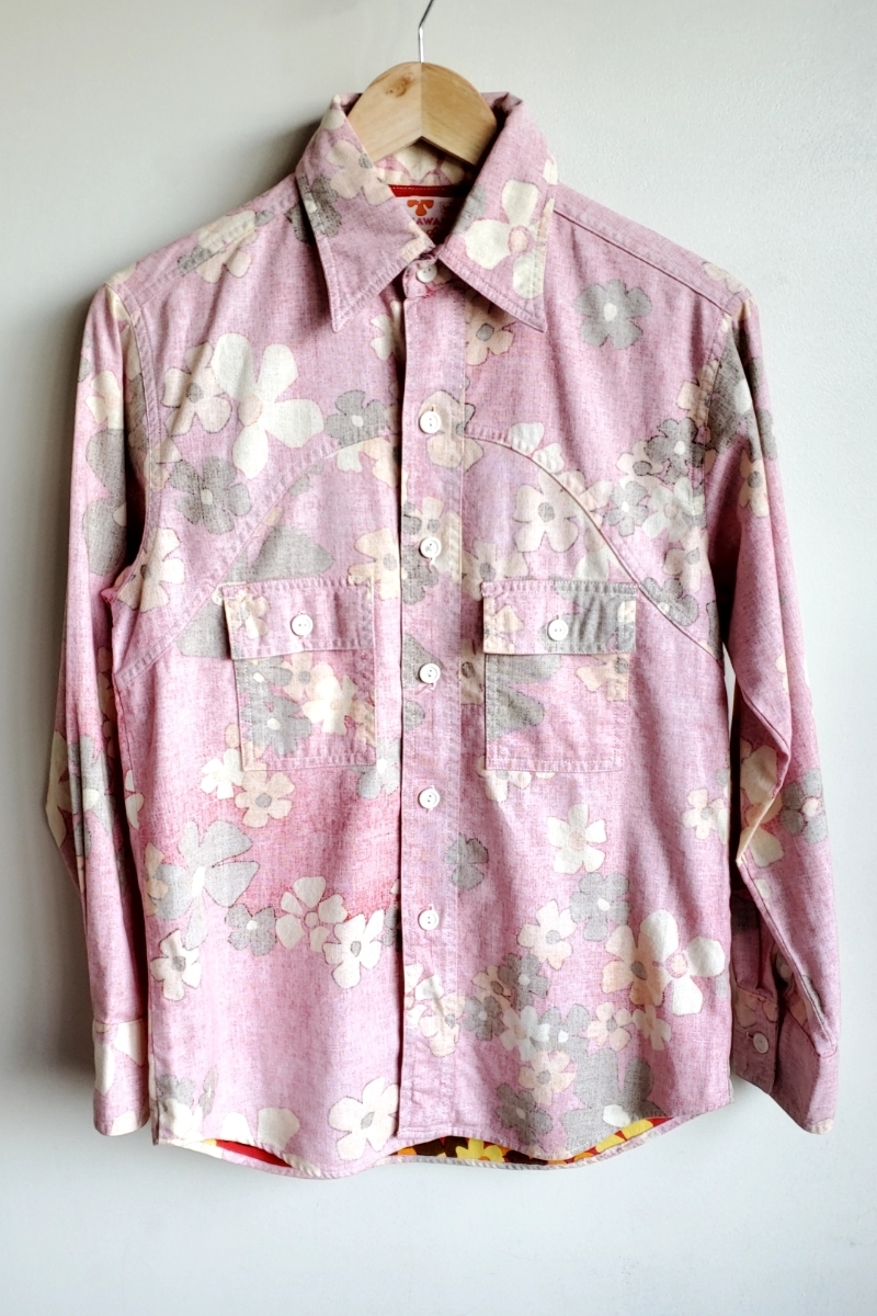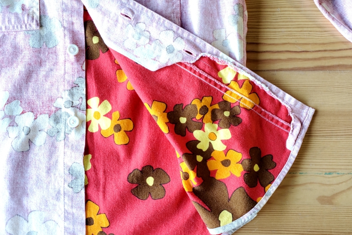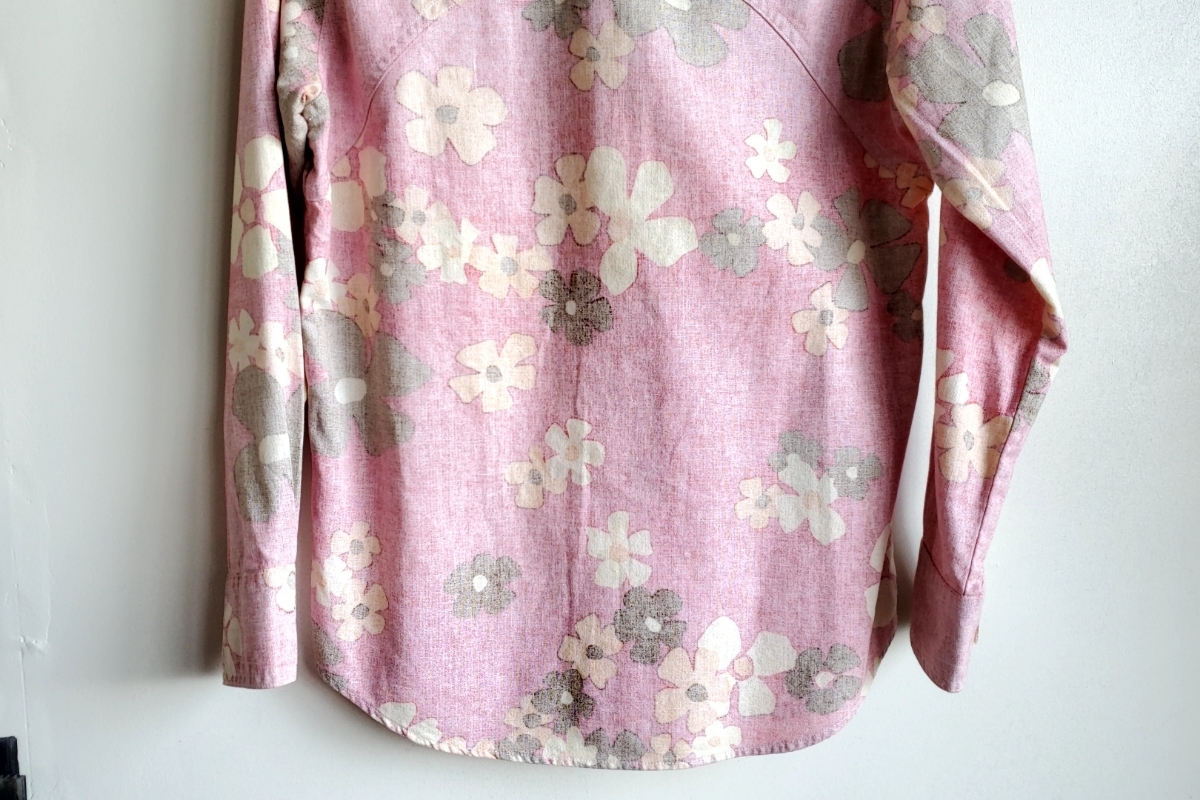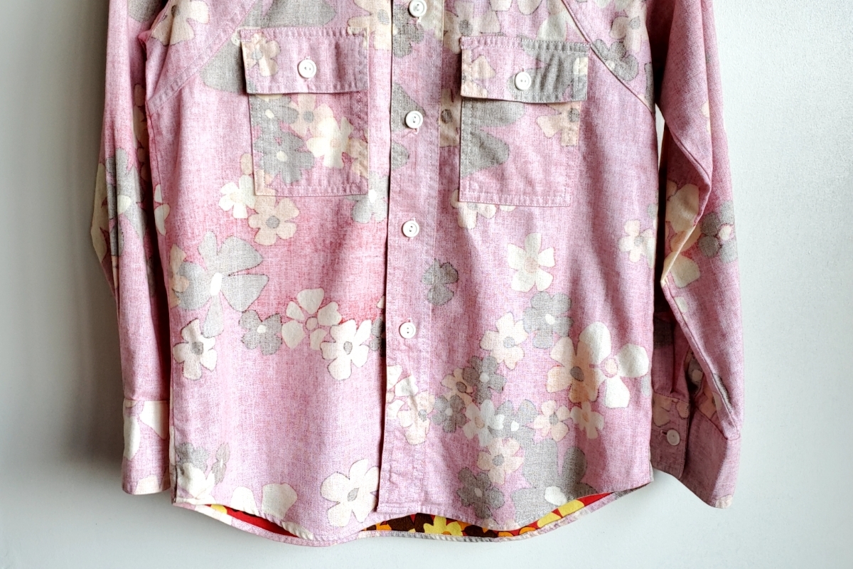 419◆【size不明】シアーズ Sears Hawaiian 長袖 コットン アロハシャツ 裏地使い 花柄 赤 レッド ピンク 古着 中古 USED