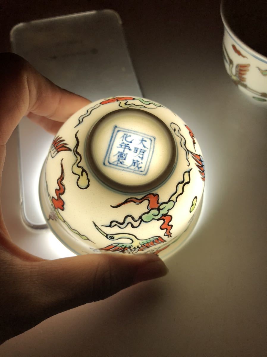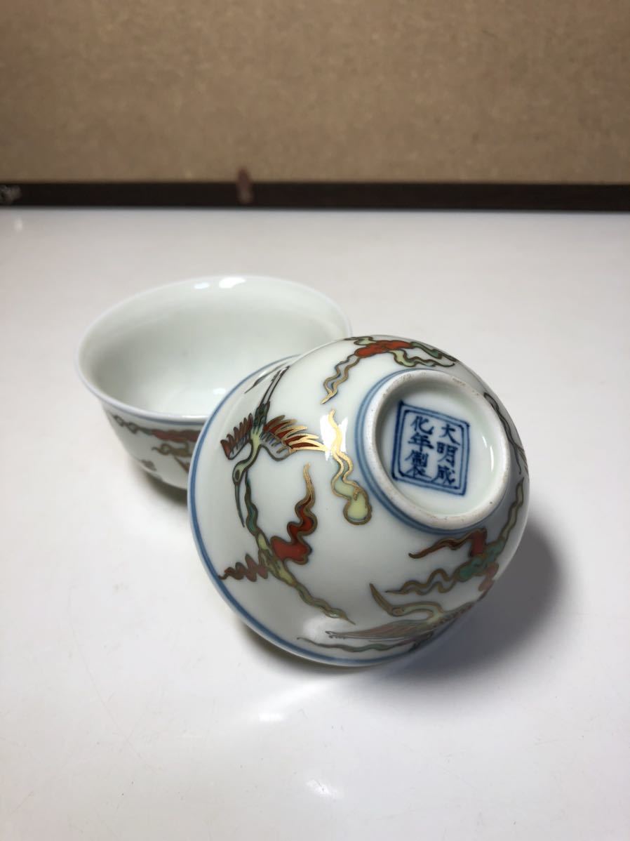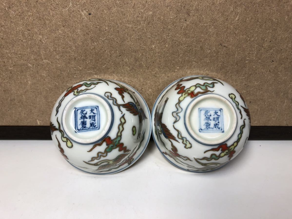 【聚寶堂】大明成化年制 闘彩杯 一対 J-157