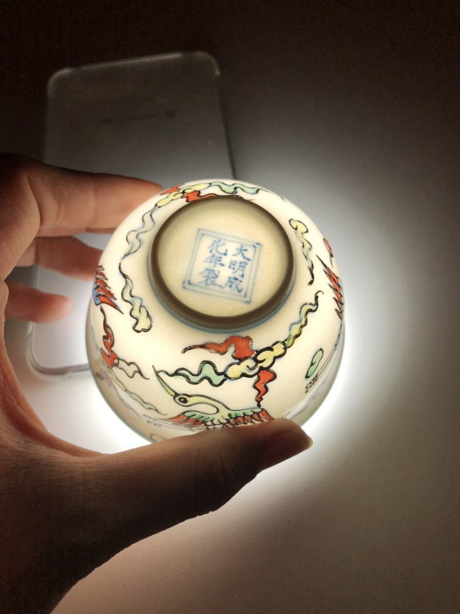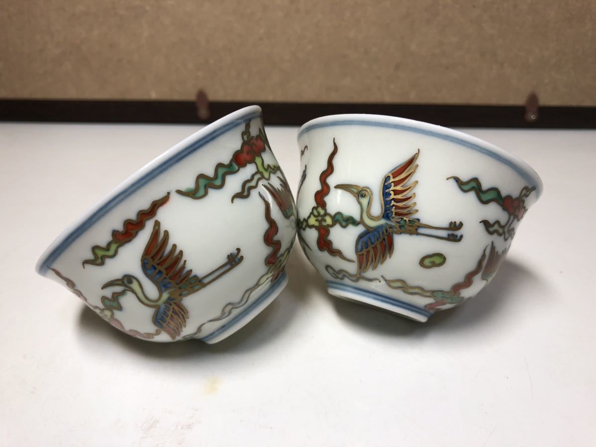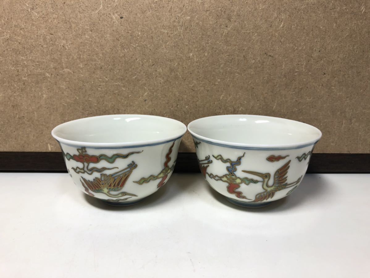 【聚寶堂】大明成化年制 闘彩杯 一対 J-157