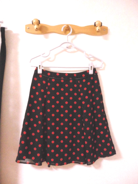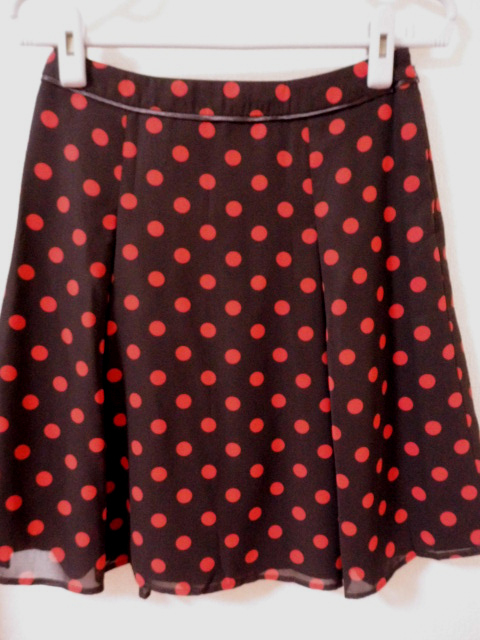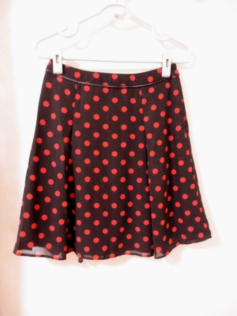 ダークブラウン×レッドの水玉の可愛いスカートです♪