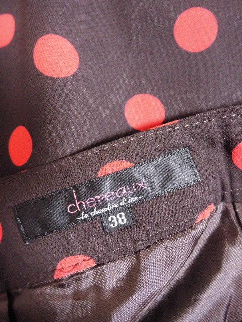 chereaux シェロー ダークブラウン×レッド 水玉 スカート 38 日本製