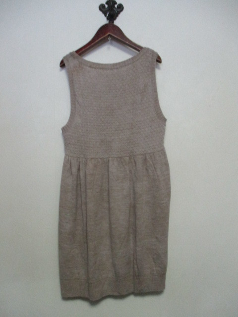 | 商品紹介 | ベージュにまだらに茶の入ったのノースリーブニットミニワンピースです。 上は編み模様が入っていて、 スカート部分はシンプルなメリヤス編みです。 《素材》 アクリル70% 毛30% |