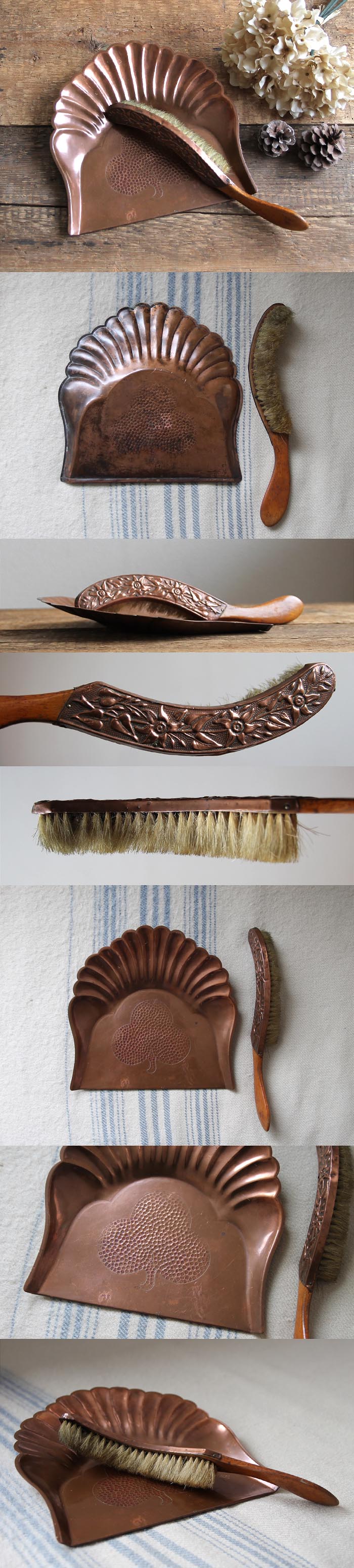 イギリス アンティーク 銅製卓上ダストパン&ブラシ/コパー/インテリア雑貨/ちりとり【おしゃれにお掃除しちゃおう】M-475