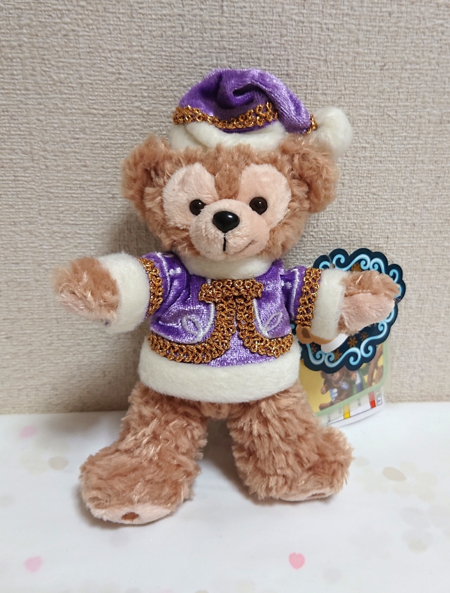 TDSカラーオブクリスマスのコスチュームを着たダッフィーのぬいぐるみになります。