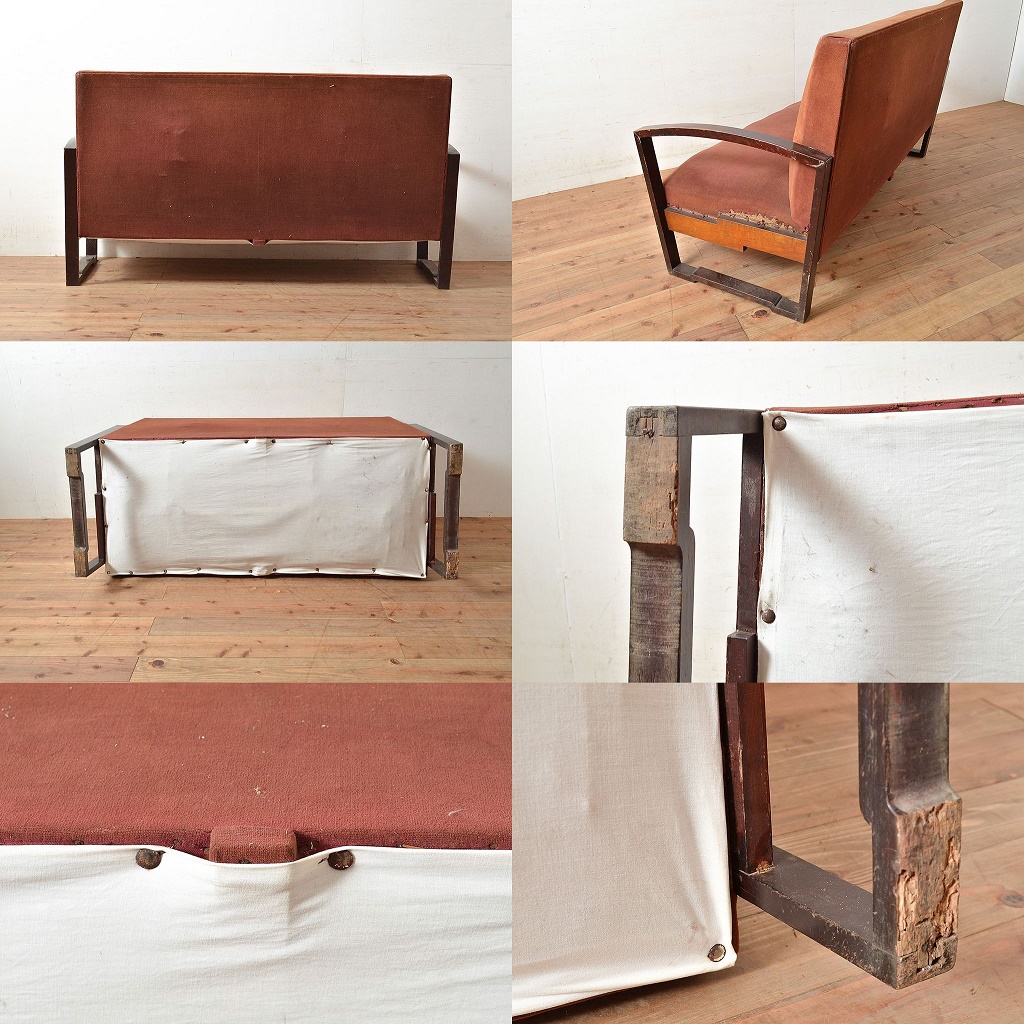 R-047716 和製アンティーク カバ材製フレーム 大正ロマンな雰囲気香る二人掛けソファ(2人掛けソファ、アームソファ)(R-047716)