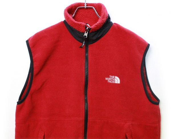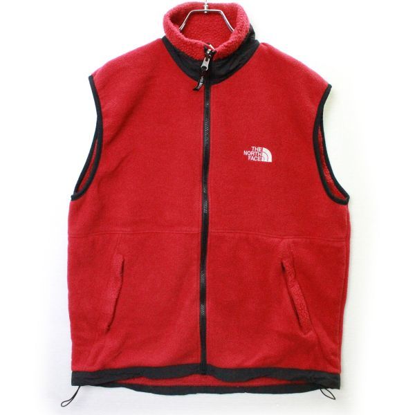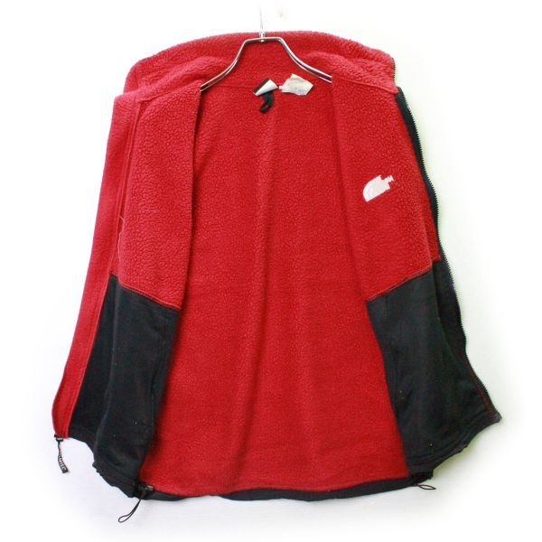 90's 00's ノースフェイス フルジップ フリースベスト 黒x赤 (M) THENORTHFACE