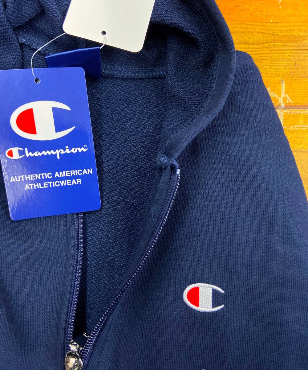 ・補足説明:ジップップ前開き、左袖にチャンピオンのミニロゴ刺繍入り。左胸にロゴ刺繍入り、左右にポケットが付いています。