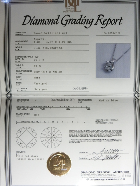 ・鑑別書のない商品につきましてはご希望に応じ鑑別書作成会社に作成を依頼いたします。