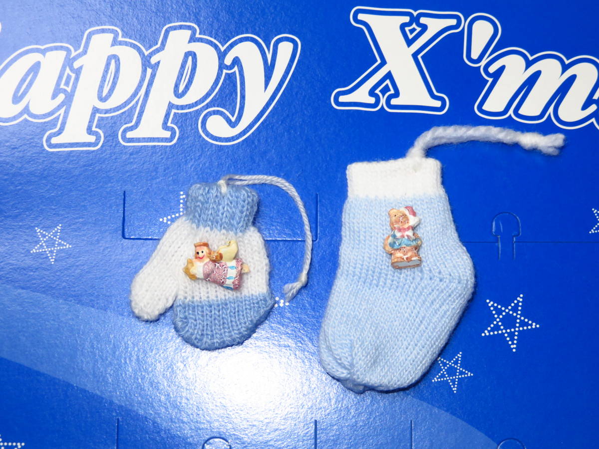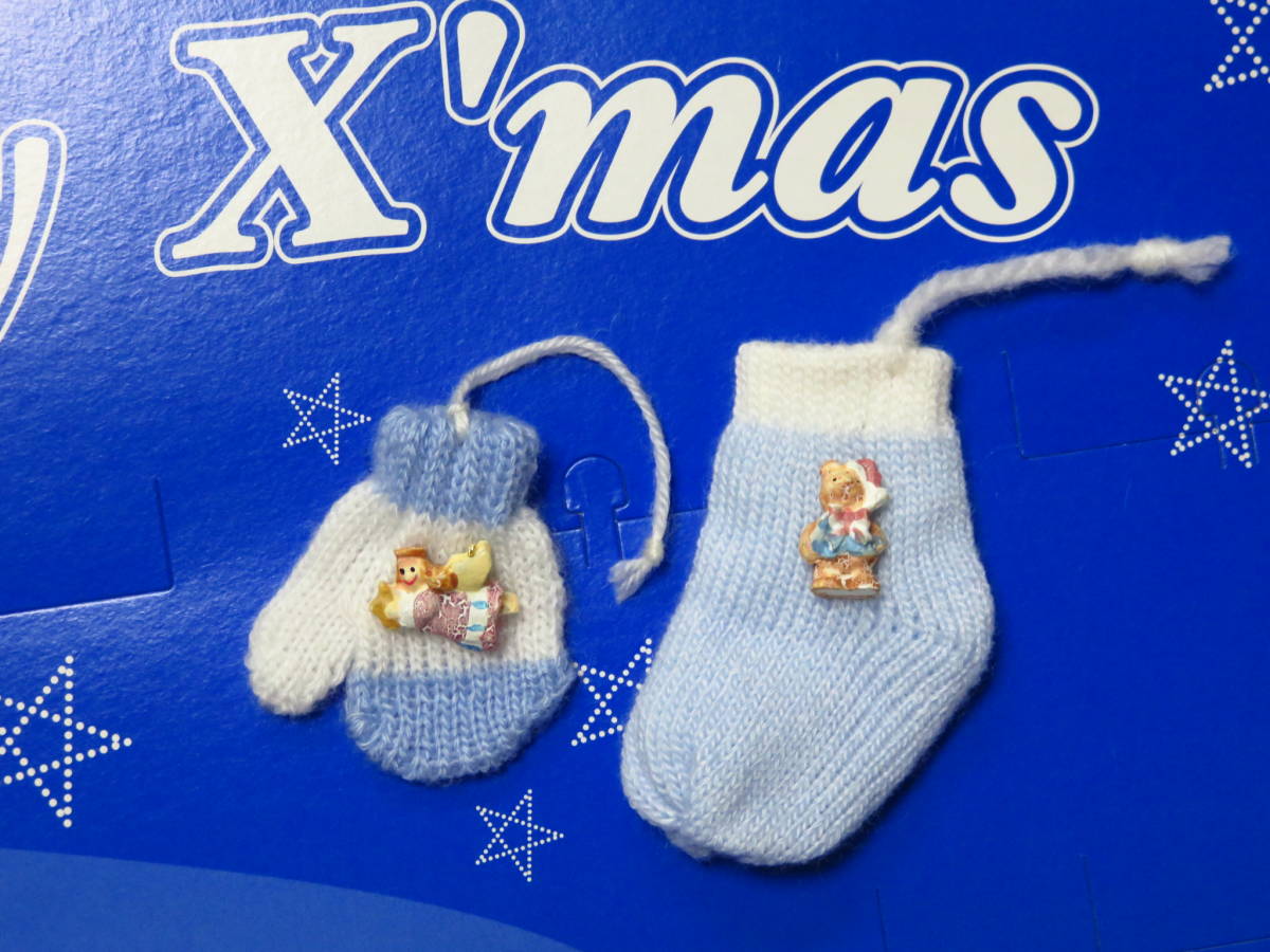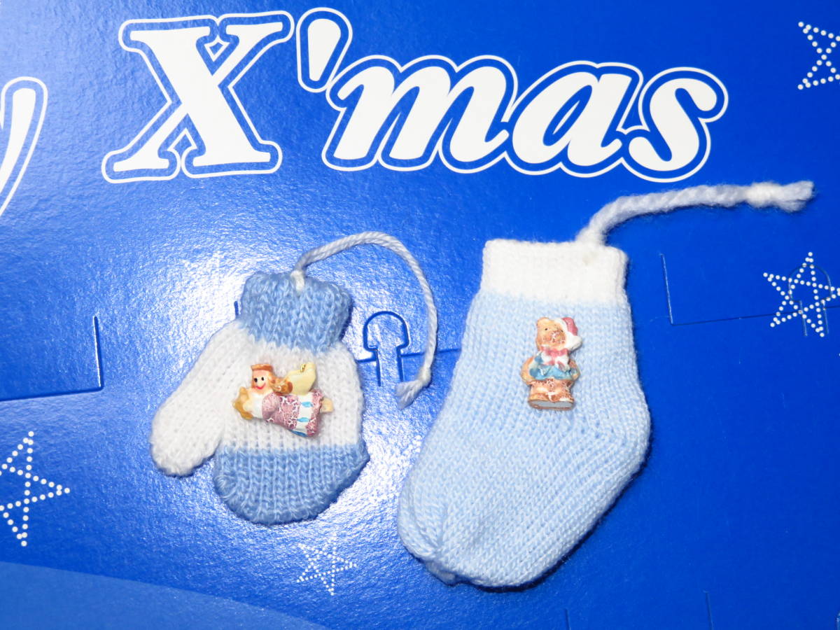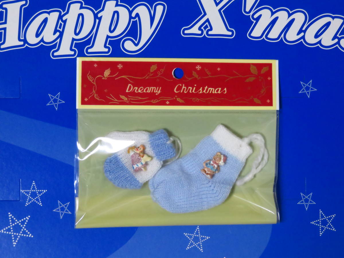 【☆クリスマスミニニット1袋(2個入)☆】ミトン&ストッキング *日本製* てぶくろ&くつした オーナメント パステルブルー *奈良県産*
