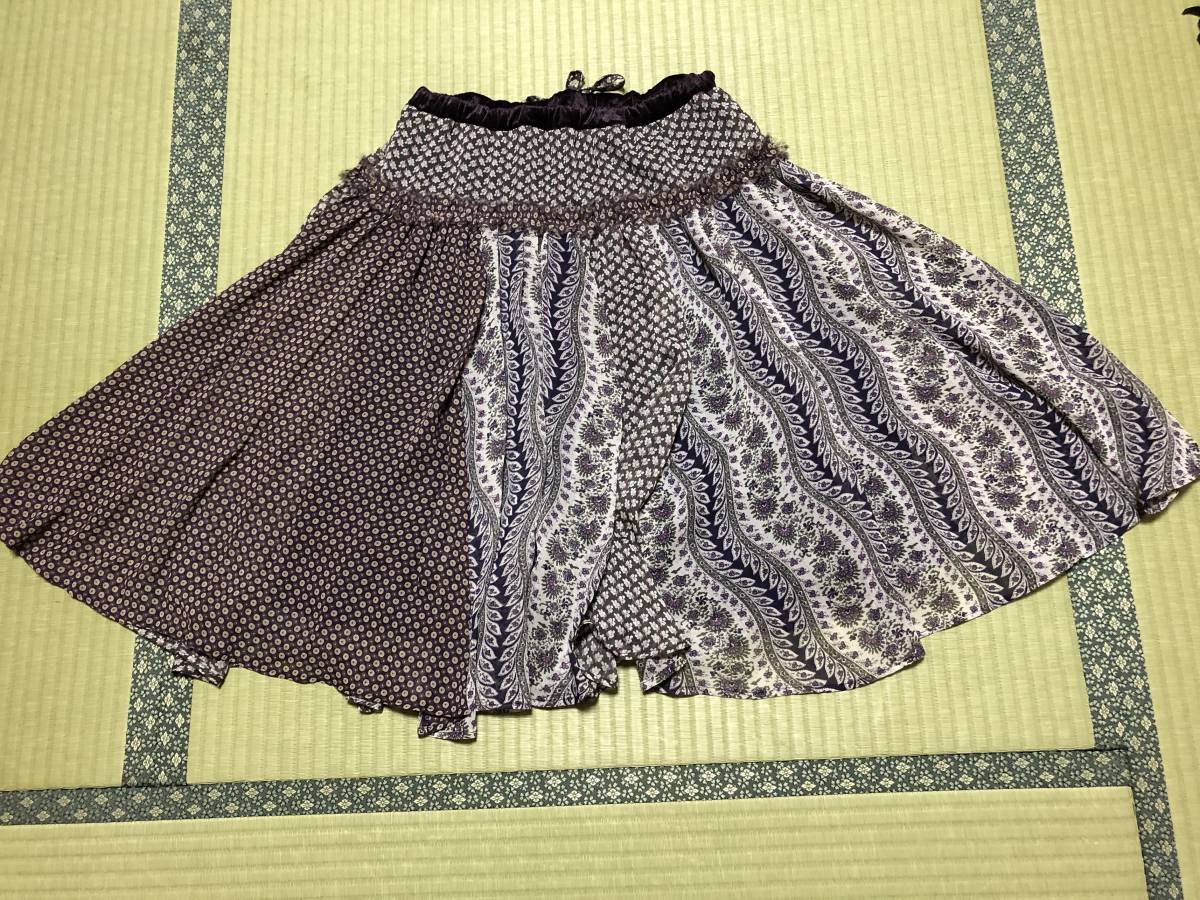 ウェスト下部に切り替えがあり、スカートも違う柄の生地を縫い合わせたスカートです。