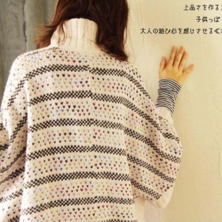 カラフルハートモチーフスタンドネックゆったりスラブニットポンチョ
