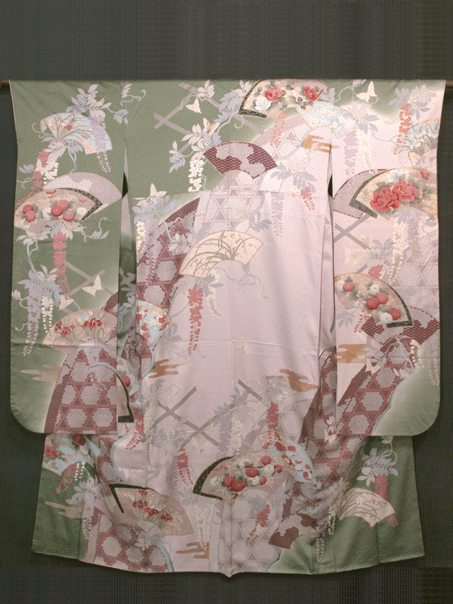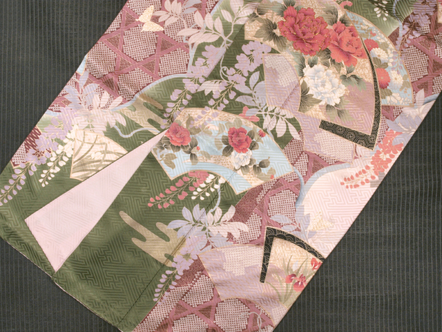 【振袖】垣に扇と花蝶文 綸子 丈164 TAIK01017風楽 |