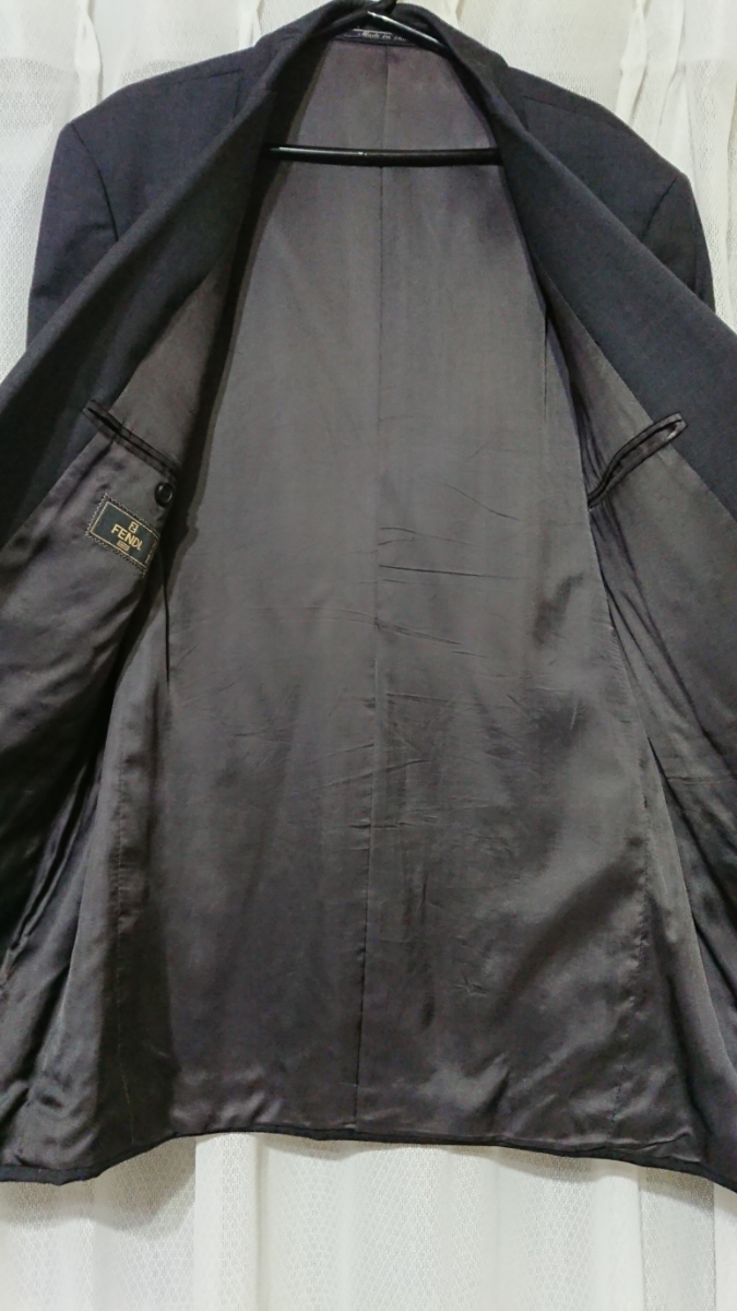 オールシーズン着用可FENDIダブルスーツお買い得商品です。サイズ記載はありませんが、Lサイズになります。ジャケット着丈79センチ・肩幅46センチ・袖丈64センチ・パンツ・ウェスト平置き41センチ・股下75センチとなります。後、ウェスト部分裏地が黄ばみシミ等があります。写真記載しておりますのでご確認下さい。必ず お写真を御参照の上ご理解・ご納得の上での御入札をお願い致します。その他お気になる箇所等が御座いましたら必ずご入札前にご質問及びお問い合わせをお願い致します。(トラブル防止上です)新品に近い商品を求められてる方・神経質の方・アヤつけ・難癖・クレ-マ-的な方のご入札は固く固くお断りいたします。 尚、当方は出品時に正常化の確認を行い正常と判断を致しました商品を出品しておりまずが(注意事項1)万が一配送中等に起きた事故・破損等で到着時にご説明記載欄との違い及び不平等による問題が発生した場合のみに限り返品等を受け付けいたしております。注意事項2(お買い上げをされた商品と同じ物に限ります)又、この様な時に発生しました送料及び振り込み手数料等はお互いの御負担とさせて頂きますので、続けてご理解・ご納得をお願い致します。注意事項3(落札商品の発送連絡及び到着日等に関しましては発送時に取引ナビにてご連絡を入れさせていただきます。到着日を含むより2日以内とさせて頂きます。 その以降に関しましてはどの様なご事情又はご理由がありましても当方は対応を致しかねますのでご理解・ご協力・ご納得をお願い致します。注意事項4)又、記載内容に従わずお約束を守って頂けない上何か此方に対して負に落ちず悪い評価等でのご対応を取られる方がいらっしゃいますがその様なご対応しか取れない方のお買い上げは本当にお控え下さい。(当方はお約束を守って頂ける方には精神誠意を持ってご対応をさせて頂きます) こちらの商品はあくまでも中古商品ですので基本的にノークレーム・ノーリターンでのご理解をお願い致します。商品落札後の発送はクロネコヤマトさんの着払いのみの発送となりますので宜しくお願い致します。 (注意事項5)こちらの商品ですが、他での店頭販売もしている為タイミングが悪く、ご入札及びご落札をされた時点で既に売約済みとなってしまっている事も御座いますのでご入札及び落札をされる方は1度その前に商品が有無かのお問合せをお願い致します。お問合せの無い方のご入札をされた方には大変申し訳ありませんがその様な時には落札者様都合にてキャンセルとさせていただきますのでご理解・ご協力を頂けます方のみのご入札をお願い致します。(注意事項6)その様な事が起きた時点で当方に対して悪い評価等をして来られる方がいらっしゃいますがその様な方は絶対にご利用をお控え願います。(注意事項7)尚当方は忙しい為、四六時中パソコン等を確認しておりませんのでご対応及びご確認が遅れてしまう事もございますのでご理解・ご納得・ご協力を頂ける方のみお願い致します。