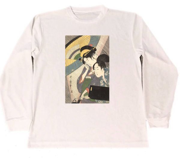 喜多川歌麿 ドライ Tシャツ 美人画 浮世絵 絵画 名画 グッズ ロング ロンT 白