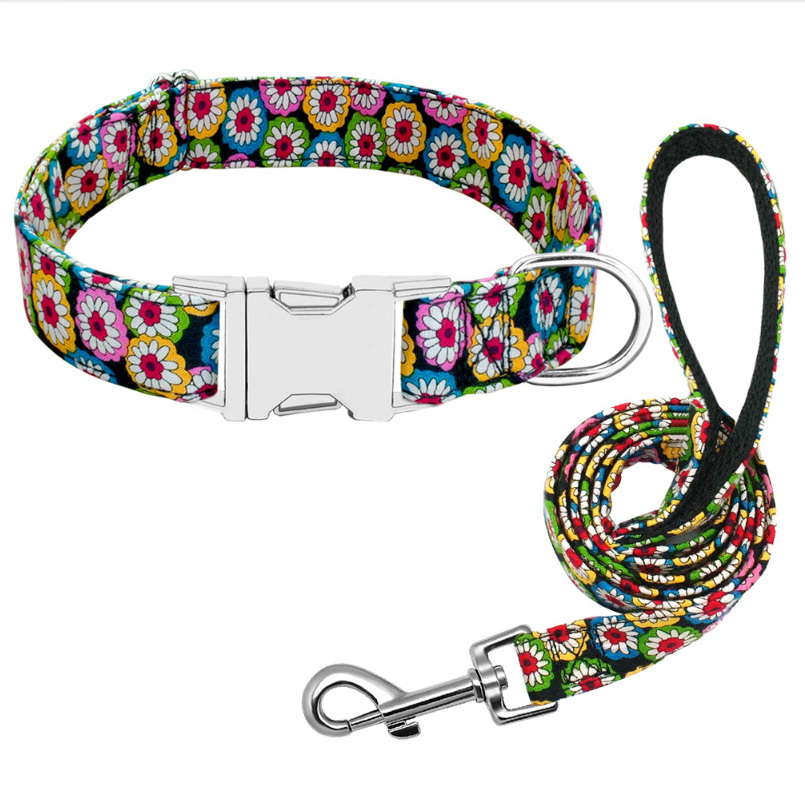 かわいい 犬用 猫用首輪 リード セット サイズS おしゃれ♪ カラフル 花柄 0001-05-s