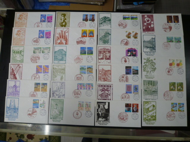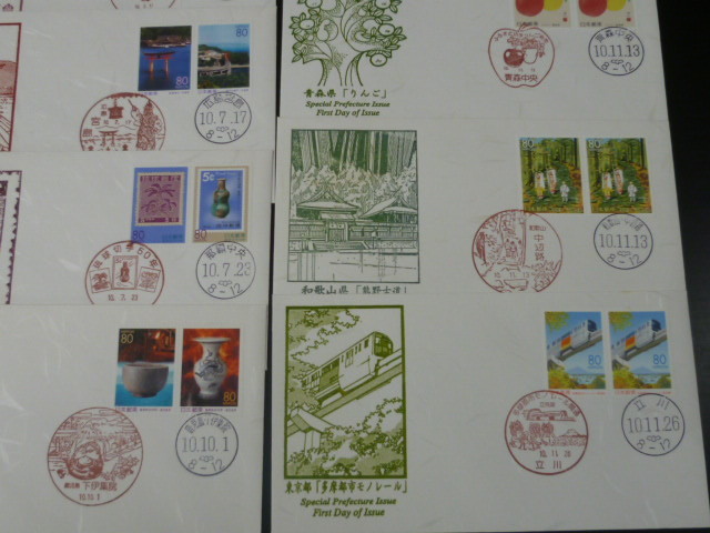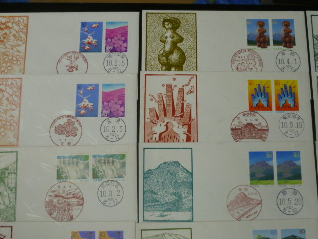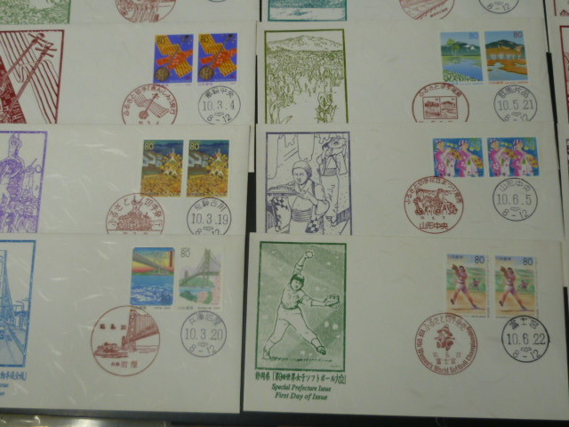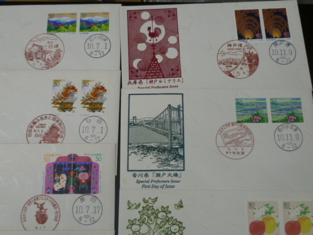 19 S №10 日本 ふるさと 初日カバー 1998年 地324-373の内 50円・80円 ペア貼・他 局違い含 計23通