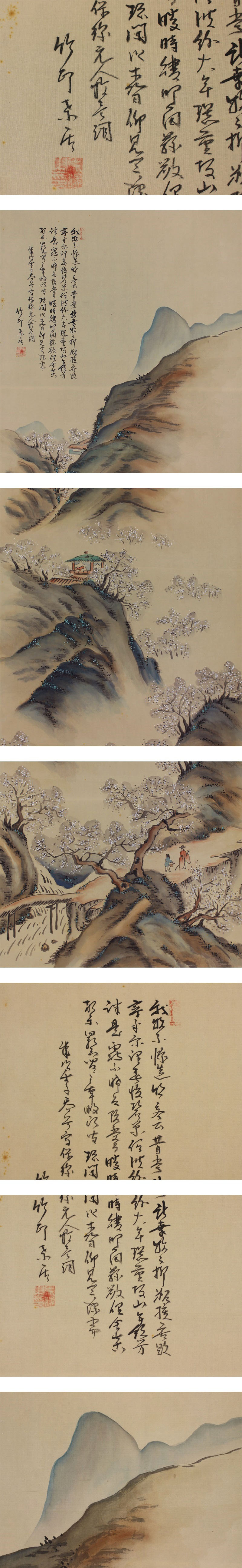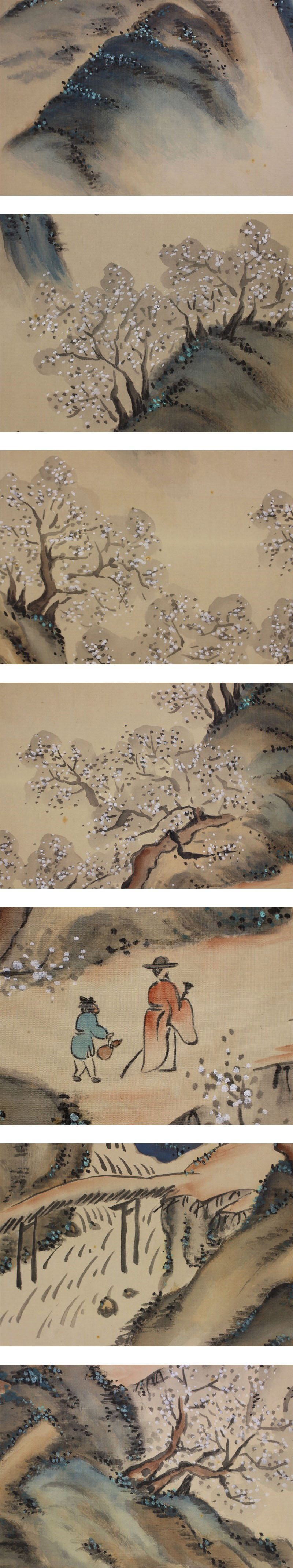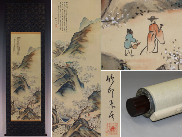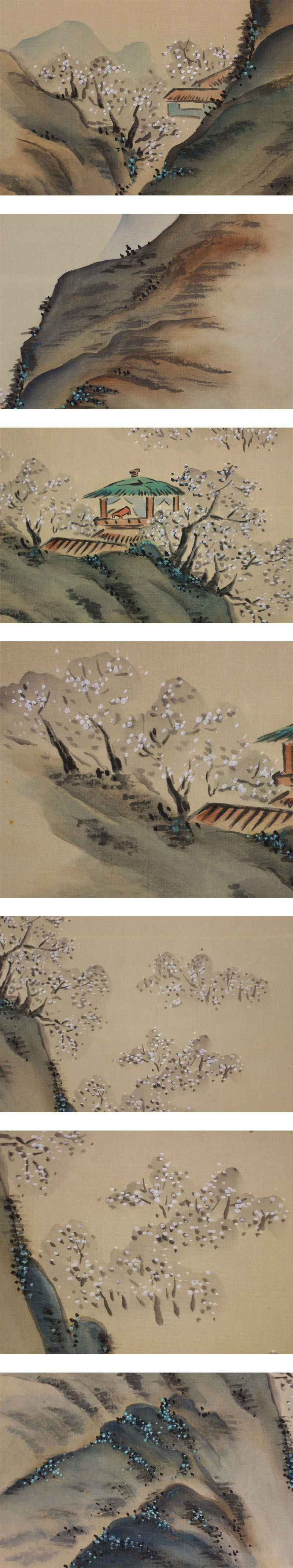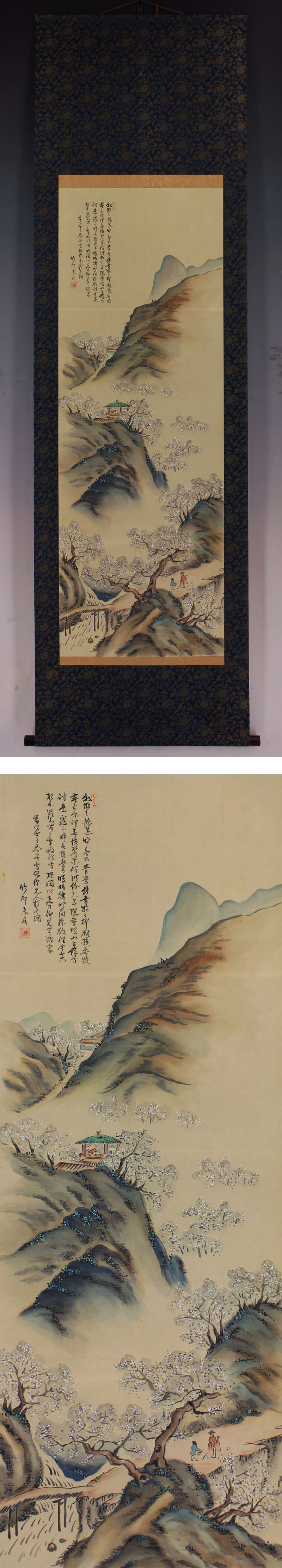 | №1908025 名品【真作】田辺竹邨【桜閣山水】◆絹本◆合箱◆掛軸 | |