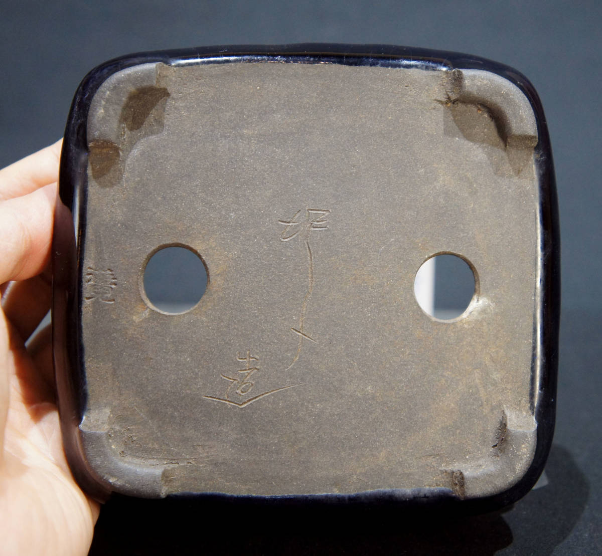 遊鬼 盆栽鉢 奥行12.7cm 横幅13.2cm 高さ3.5cm