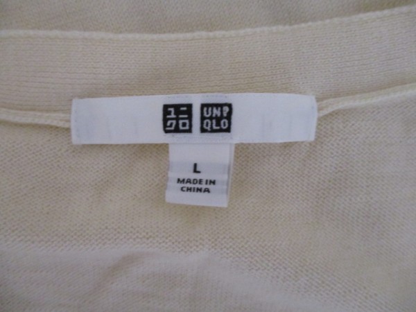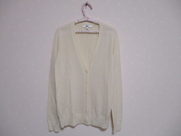 ★ ユニクロ ★ Vネック ウール カーディガン レディスL クリームホワイト(1008)