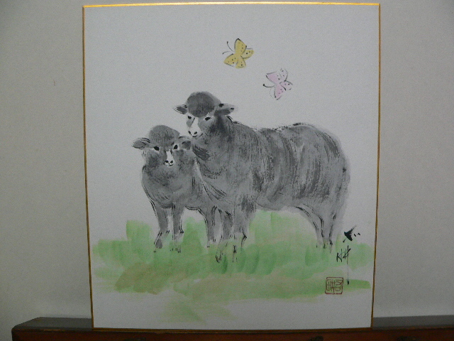 三島右畊 (みしまうこう) の色紙「羊」・額なし。