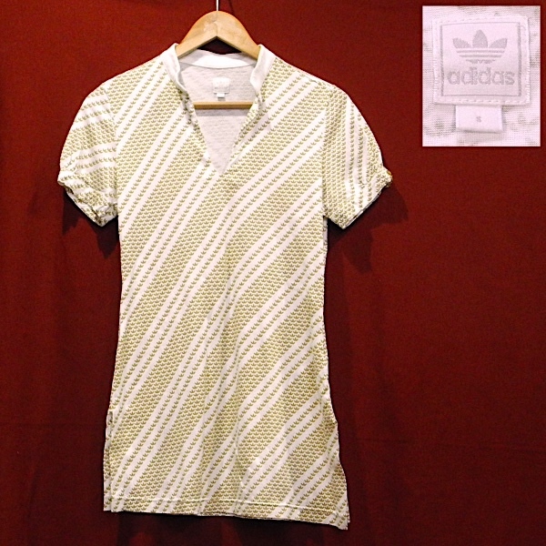 ADIDAS アディダス 90’s オリジナルス 白タグ デザイン Tシャツ カットソー チュニック ロゴ 斜め ストライプ 白 金 S