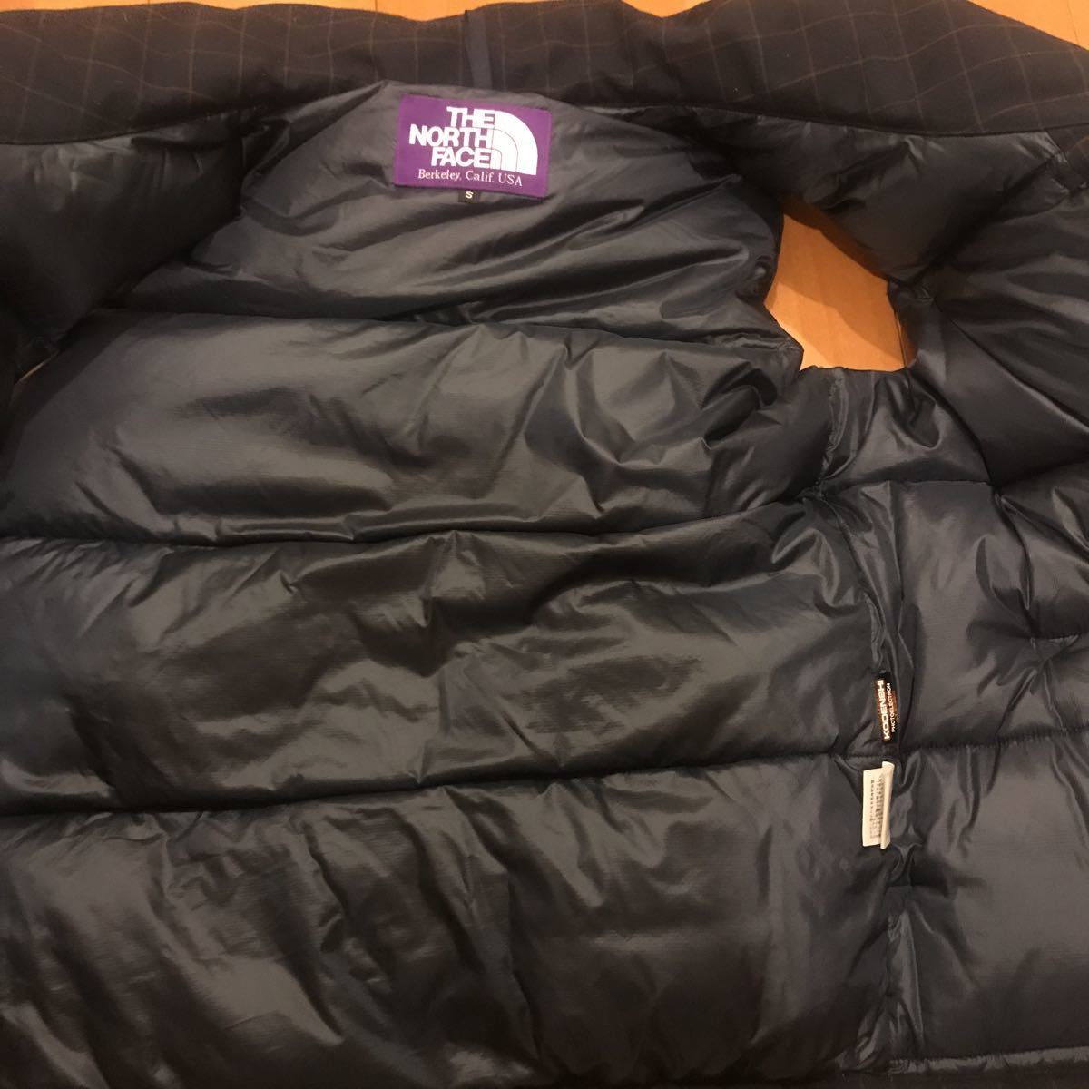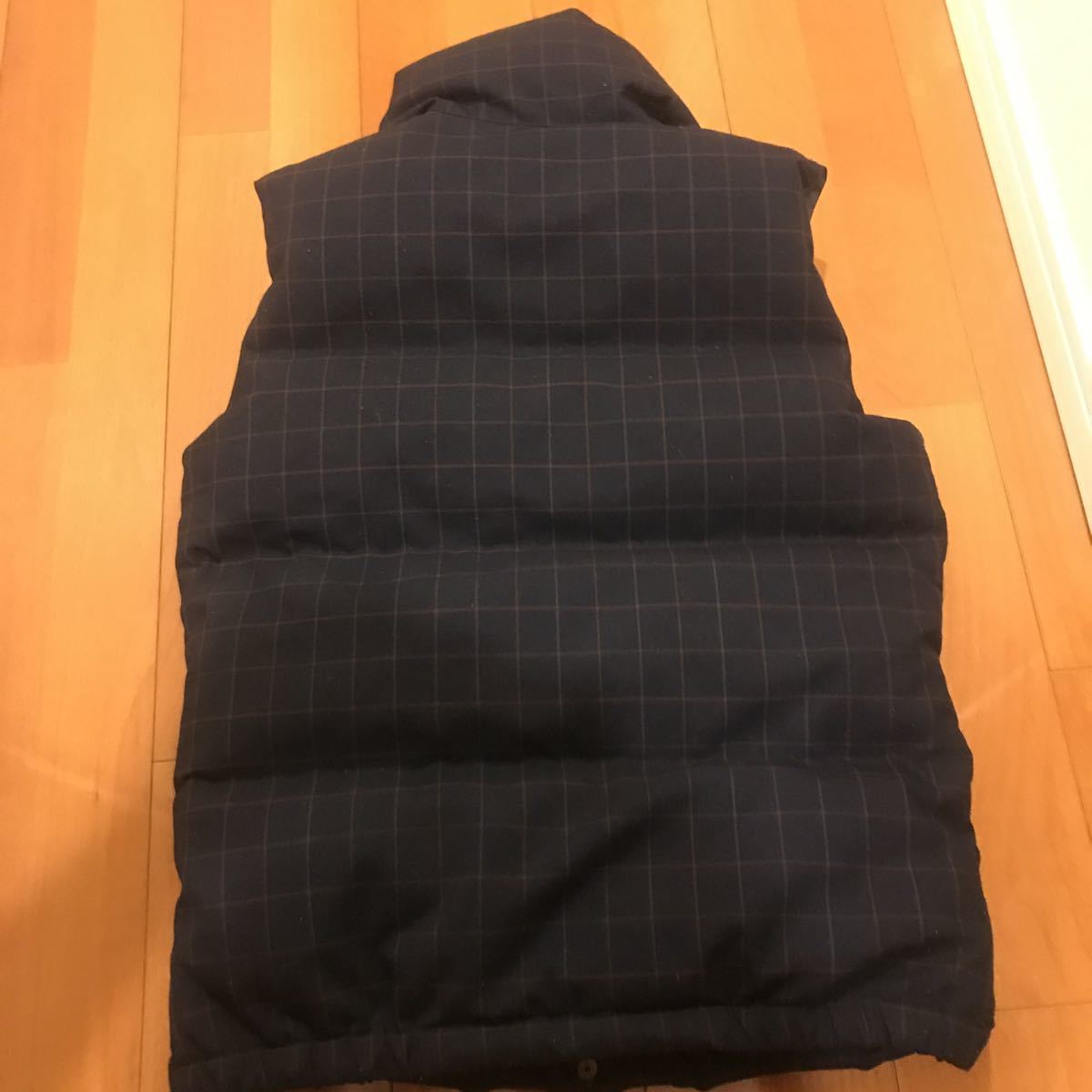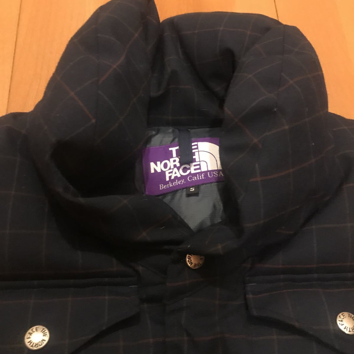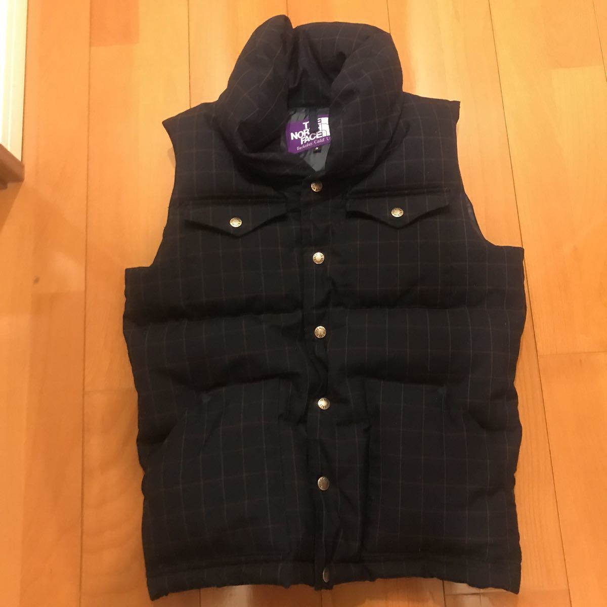 数回着用 ノースフェイス×ナナミカ パープルレーベルダウンベストです。ネイビーベース、Sサイズ、表面はウール100%、ダウン72、レーヨン20、光電子ダウン8%です。実寸は肩幅42、身幅52.5、着丈62cmです。
