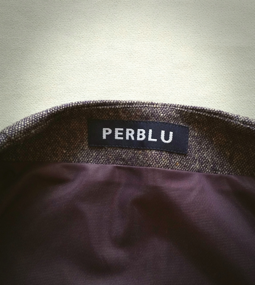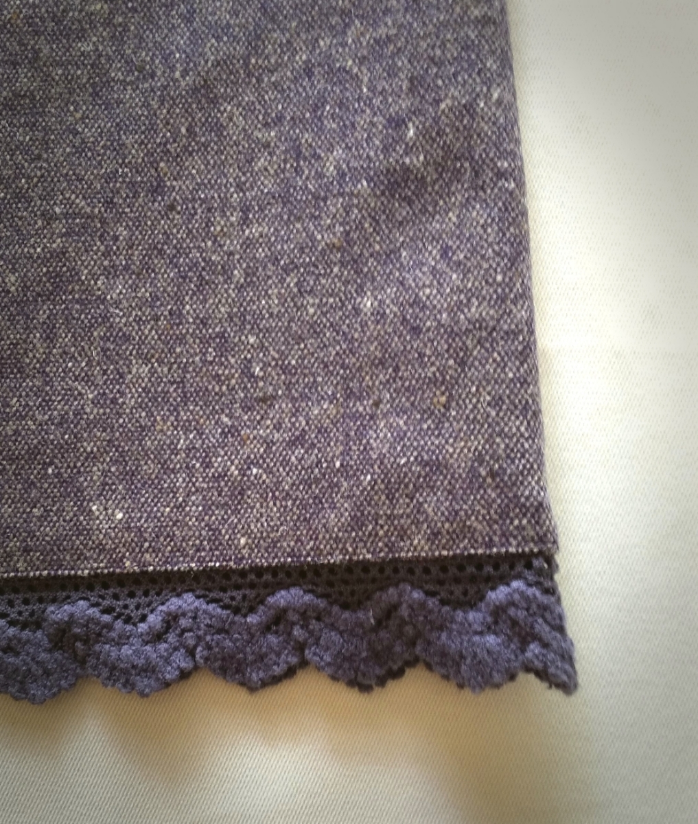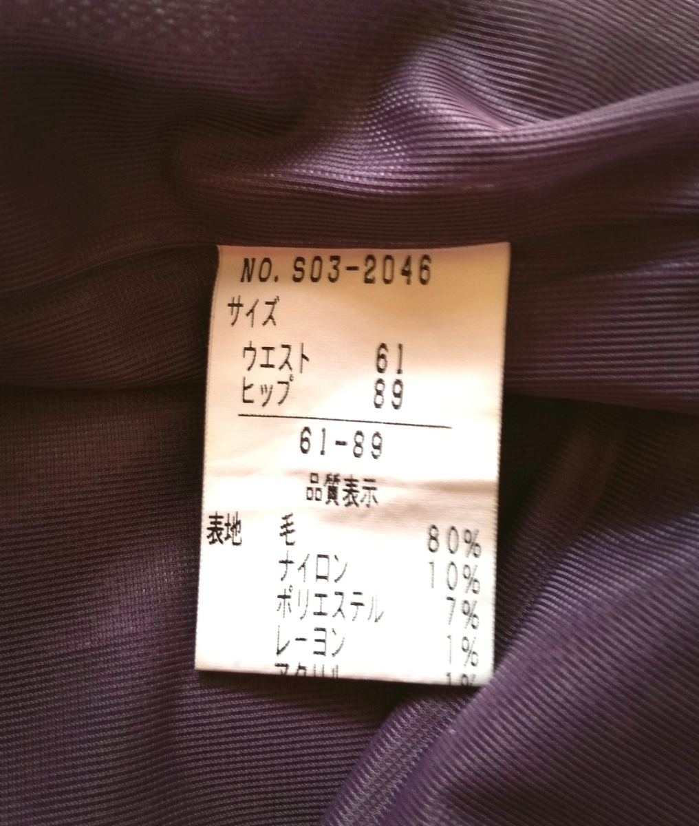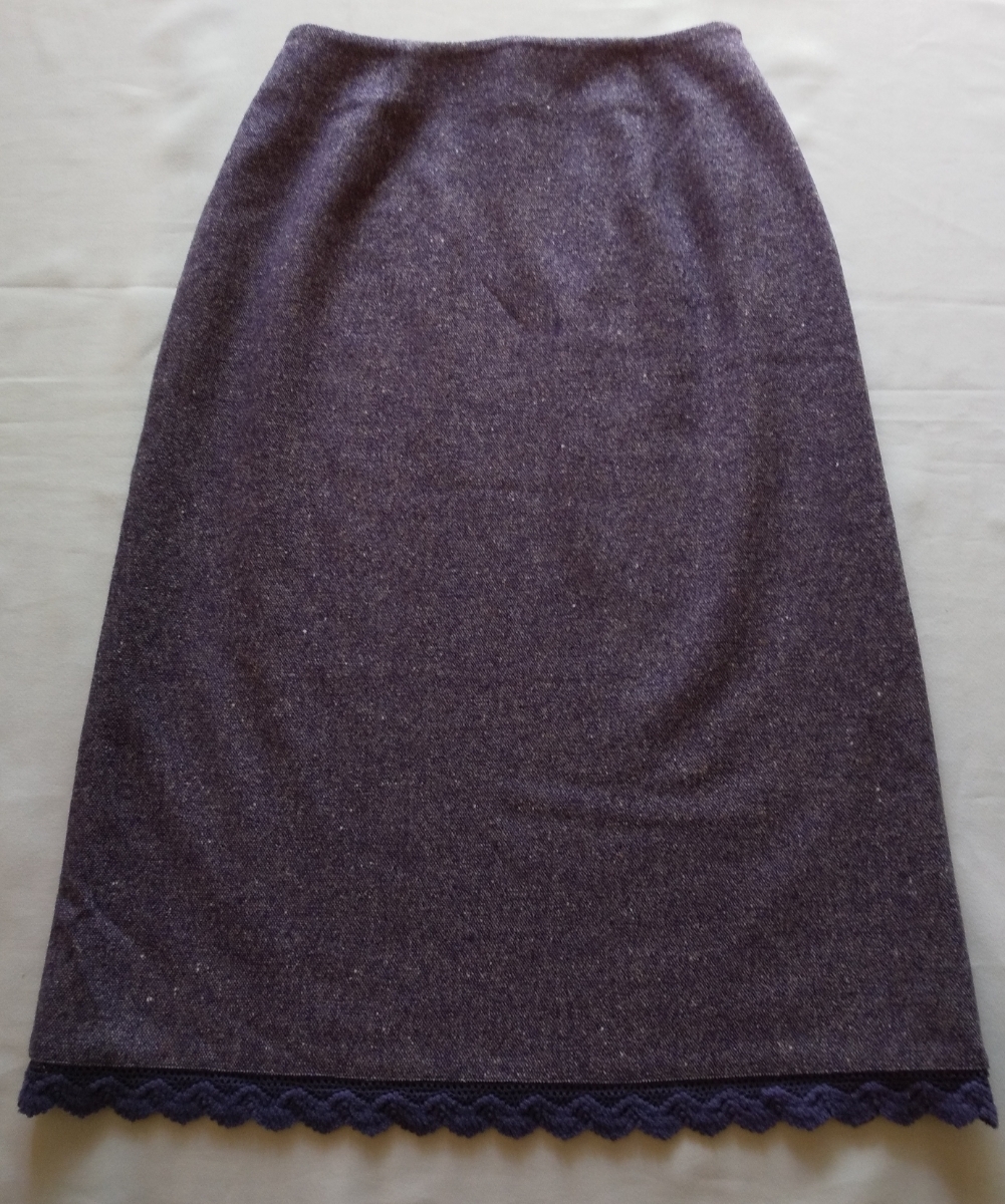 日本製 美品 PERBLE ひざ下 タイト スカート S 紫系ツイード すそレース付き
