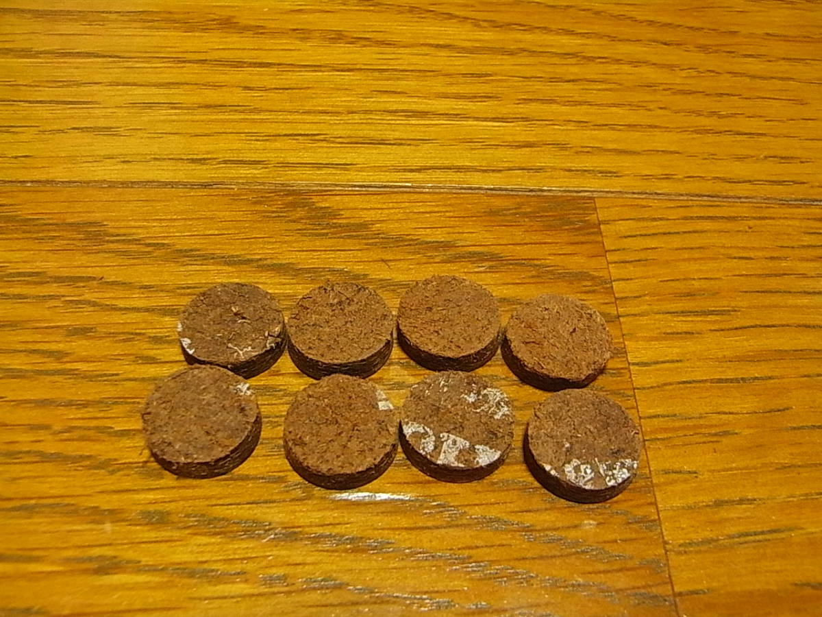 個数は8枚、カラーはブラック、直径15mm、厚み4mmくらいです。