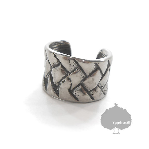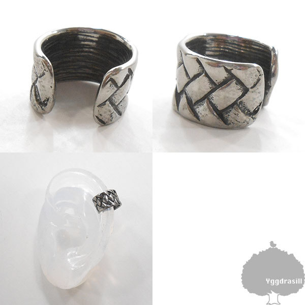 YGG★新品 イントレチャート 編み込み イヤーカフ コンク サージカルステンレス 316L シルバー 銀 燻し イヤリング イヤーカフス メンズ