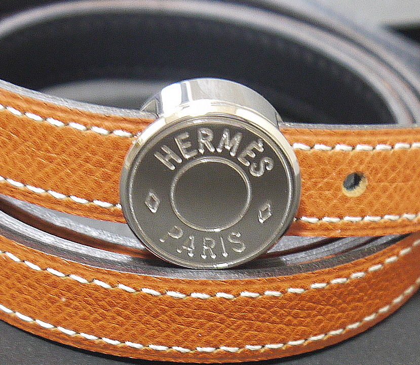 本物エルメスのセリエベルトです。 シルバーのバックルには「HERMES PARIS」の文字が刻まれ、エルメスを主張しています。 以前、国内百貨店のエルメスで100,000円位で購入し、未使用のまま、自宅保管していました。 ◆サイズ:85 バックル直径(2.9cm)ベルト幅(1.5cm) ◆付属品 保存袋(少し汚れています) | |||