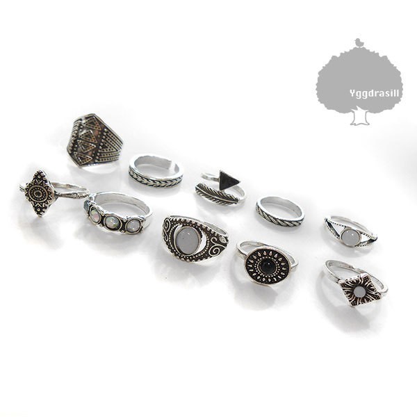 商品名:YGG★新品 エスニック シルバーカラー リング ホワイトストーン 銀色 シルバー 10個セット レディース