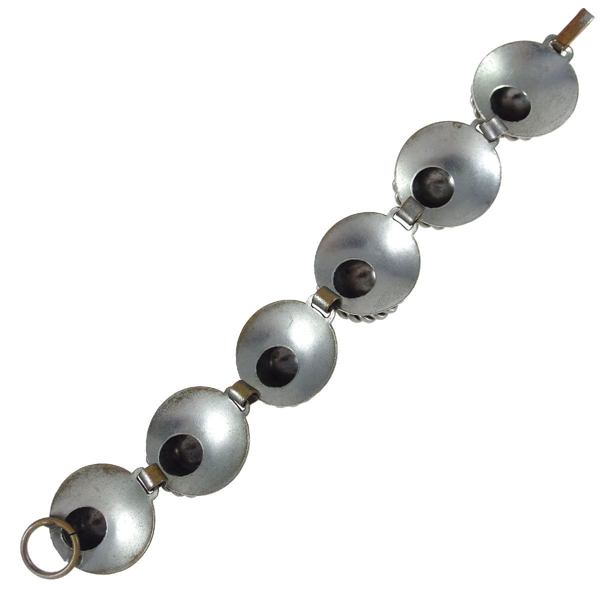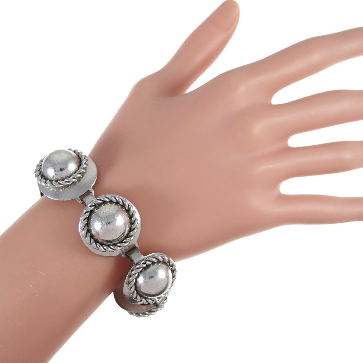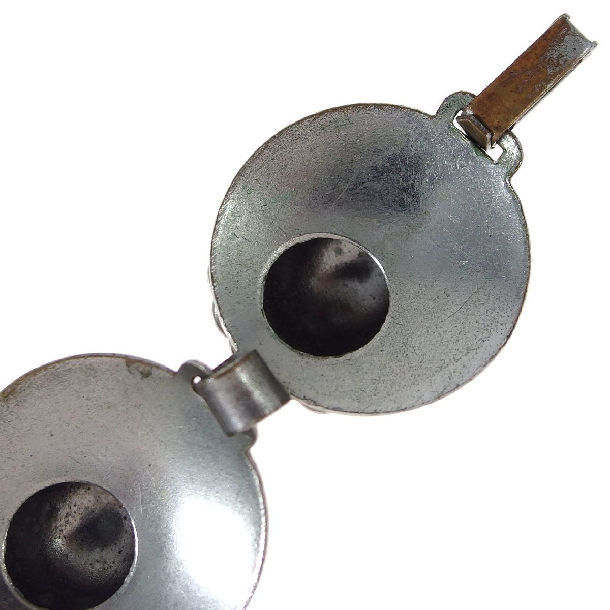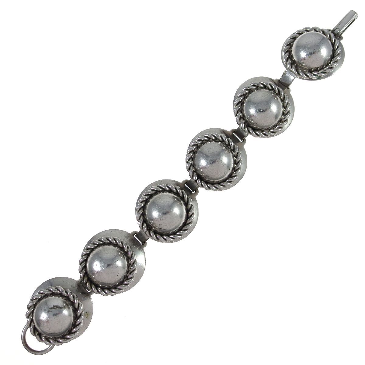 ご覧いただきありがとうございます。 こちらはアメリカから直輸入のヴィンテージアクセサリーです。 女性サイズのマネキンの手と比べた画像でサイズ感はご確認くださいませ。 腕周り約17.2㎝ほどです。 コンディションは画像優先になります。 機能面で特段の問題はございません。古いお品物のため、小傷/薄汚れ/鍍金の薄れといったものがみられることがあります。 ヴィンテージ品にご理解ある方のご入札をお願い致します。 無刻印の製品です。 明るさ等の加減で画像と実物で色味に多少の差異がある場合があります。 専用のケースなどはないのでお品物はパウチに入れ、それを小箱に入れてお送りします。 |