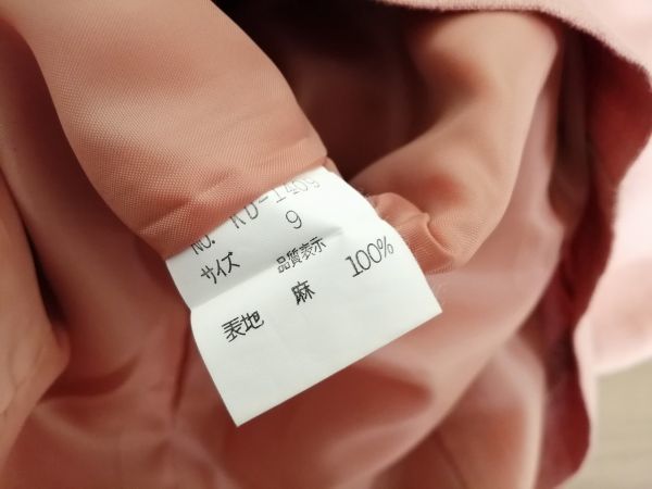 ak72 ■ KAZO DONNA BUONA QUALITA ■ ワンピース ノースリーブ サーモンピンク リネン 麻 9 M