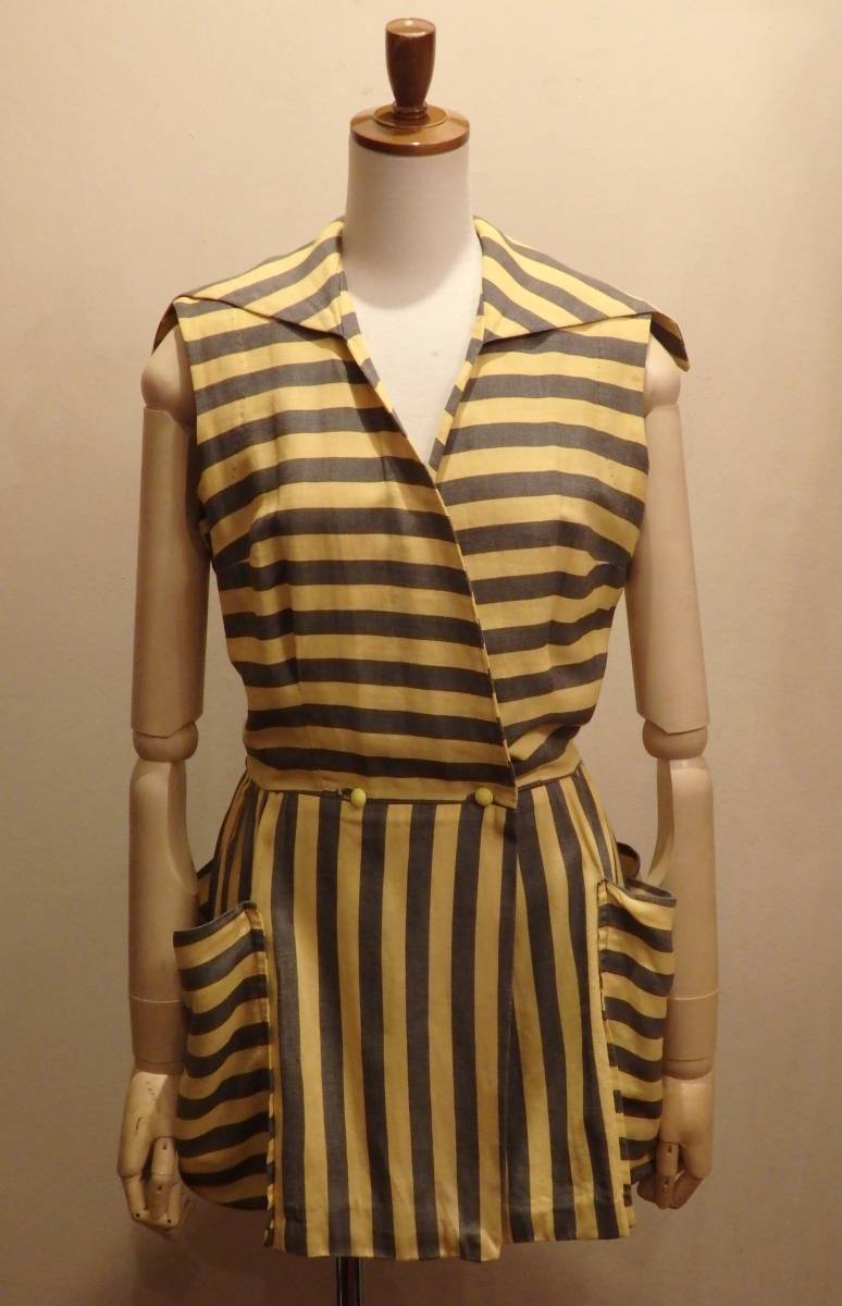 ヴィンテージ30's40'sプレイスーツ/アメリカ製/50'sSWINGロカビリービーチウェアワンピースセーラーヨーロッパフランス古着サロペットΓSD