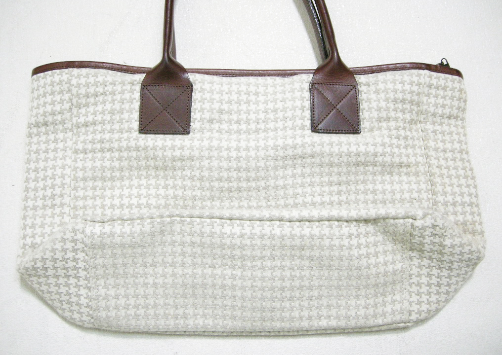 ■状態・・・表地布部分全体的に小シミ汚れがあり、持ち手レザーに汚れや小スレが御座います。内面は小さな汚れが見られます。詳細は画像にてご確認下さい。こちらの商品はあくまでもUSED品ですので,ご理解いただいてからのご入札を宜しくお願い致します。USED品にご理解の無い方・神経質な方はトラブル防止の為入札をお控え下さい。