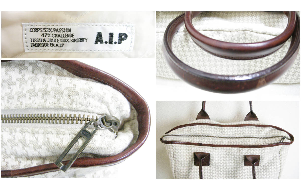 ■A.I.P/AN AMERICAN IN PARIS【エーアイピー】ベージュ×茶 革レザー×布製 トート バッグ AIP