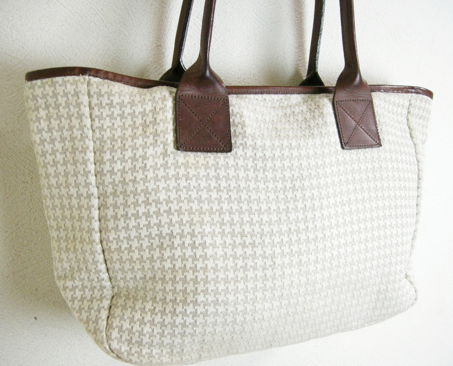 ■A.I.P【エーアイピー】ベージュ×茶革布トートバッグ■