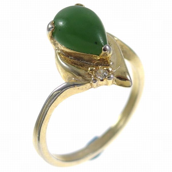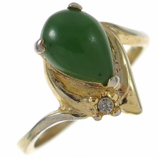 A4779◆ ヴィンテージリング * 指輪 ◆ グリーン系カラーのピアシェイプのストーン ◆ サイズ約16号 ◆