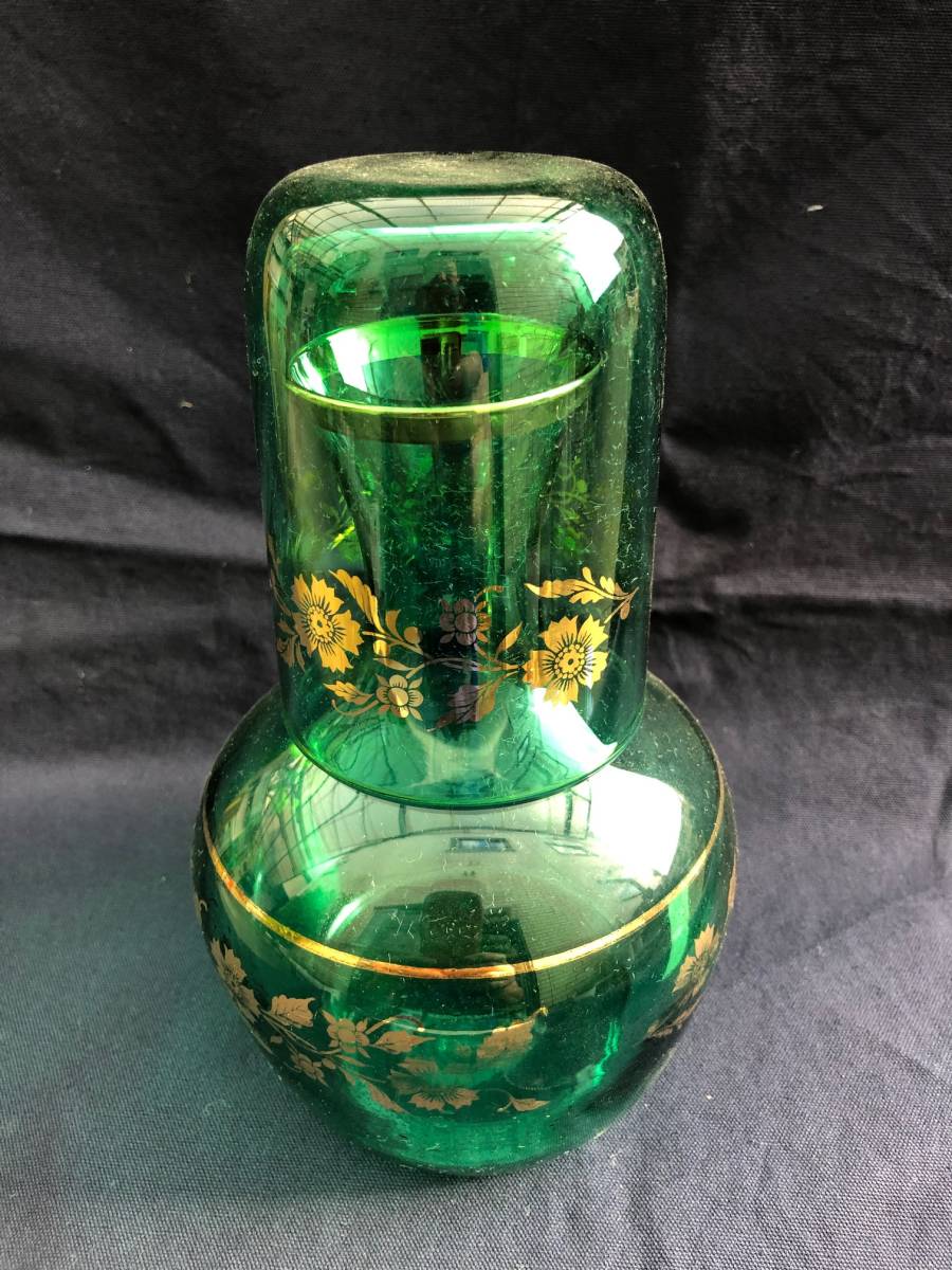◆うつわ屋◆懐かしの昭和レトロ★冠水瓶<金彩グリーン>