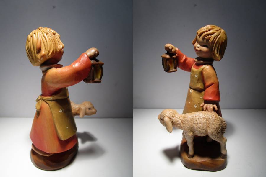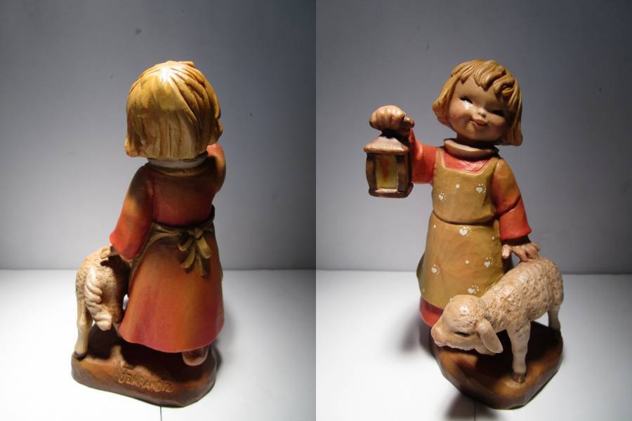 Ferrandiz らしいふくよかでかわいらしい女の子の表情、ランタンの明かりに導かれて女の子の足元に寄り添う羊のかわいらしさ、いずれも細部まで手抜かりなく表現されていてとても完成度の高い作品に仕上がっています。