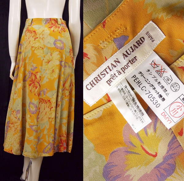 ![]() ![]() 落札後はオークション終了のお知らせメールに出品者からのメッセージが御座います。 自己紹介欄には急な休み等の記載をする場合が御座いますので一度お目通し頂きます様お願いいたします。ご一読の上オークション終了後2日以内の連絡、 落札後4日以内のご入金のお約束を守って頂ける方のご入札をお待ちしております。 小さい子供がおりますのでお急ぎのお取引を希望される方のご入札は遠慮下さいませ。 ---↓ここにブランド名記入---- ブランド名:CHRISTIAN AUJARD クリスチャンオジャール ---↓ここに特徴記入---- 特徴:しなやかな優雅ロングスカートです。マンダリンオレンジを基調に藤色系などの花柄が優美に描かれたヨーロッパ製生地滑らかシルク100%。たっぷりフレアーな高級感漂うロングスカートです。 ---↓ここにサイズ記入---- サイズ : 表記なし 表示(Sサイズ相当)(トルソーは9号です) 実寸(平置き採寸) ウエスト32.5cm、着丈83cm、ヒップ52cm、裾幅106cm、合わせ部後ろフック、ファスナー留 ---↓ここに素材記入---- 素材 : 絹100% 裏地 キュプラ(ベンベルグ)