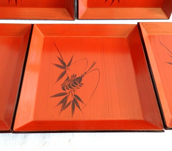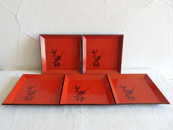 漆塗 角 小皿 伊勢海老 5枚セットです。